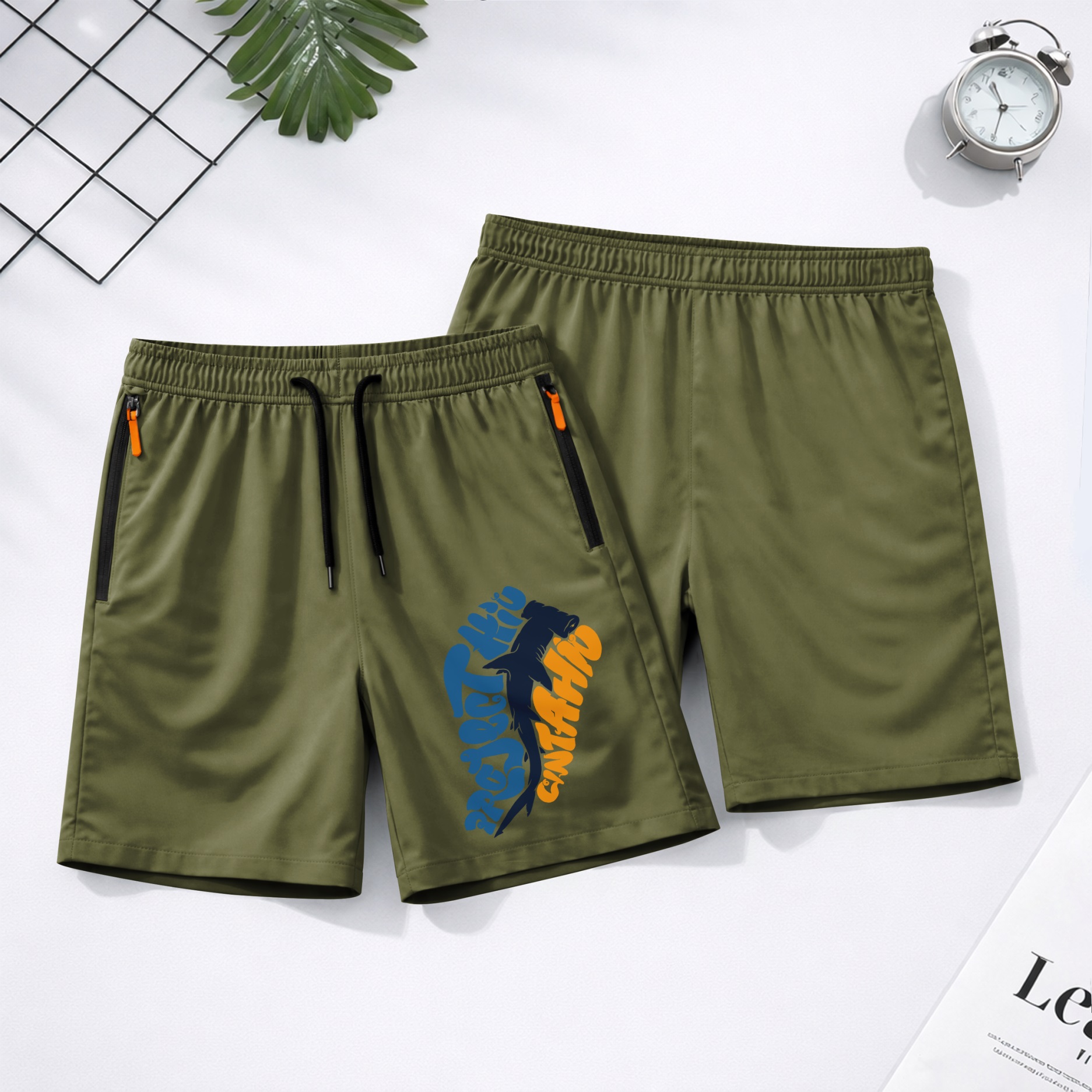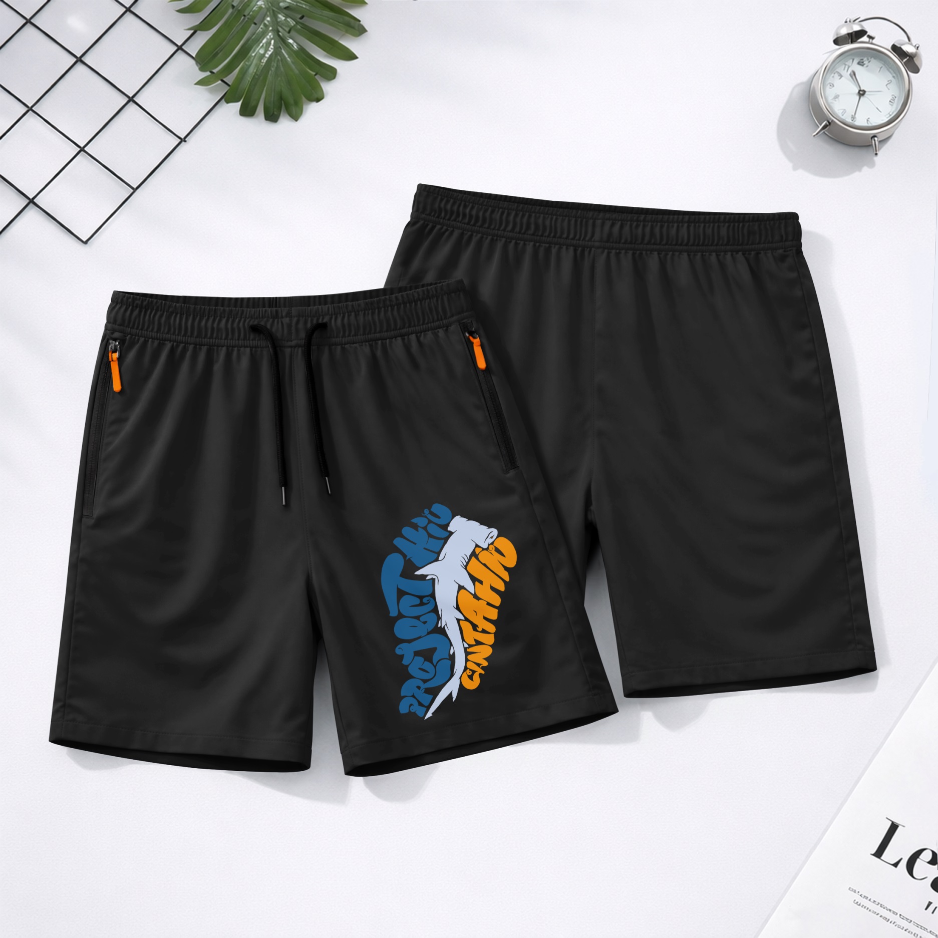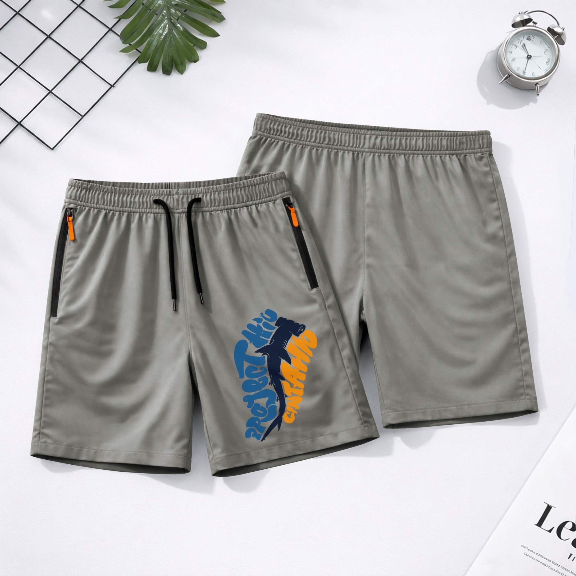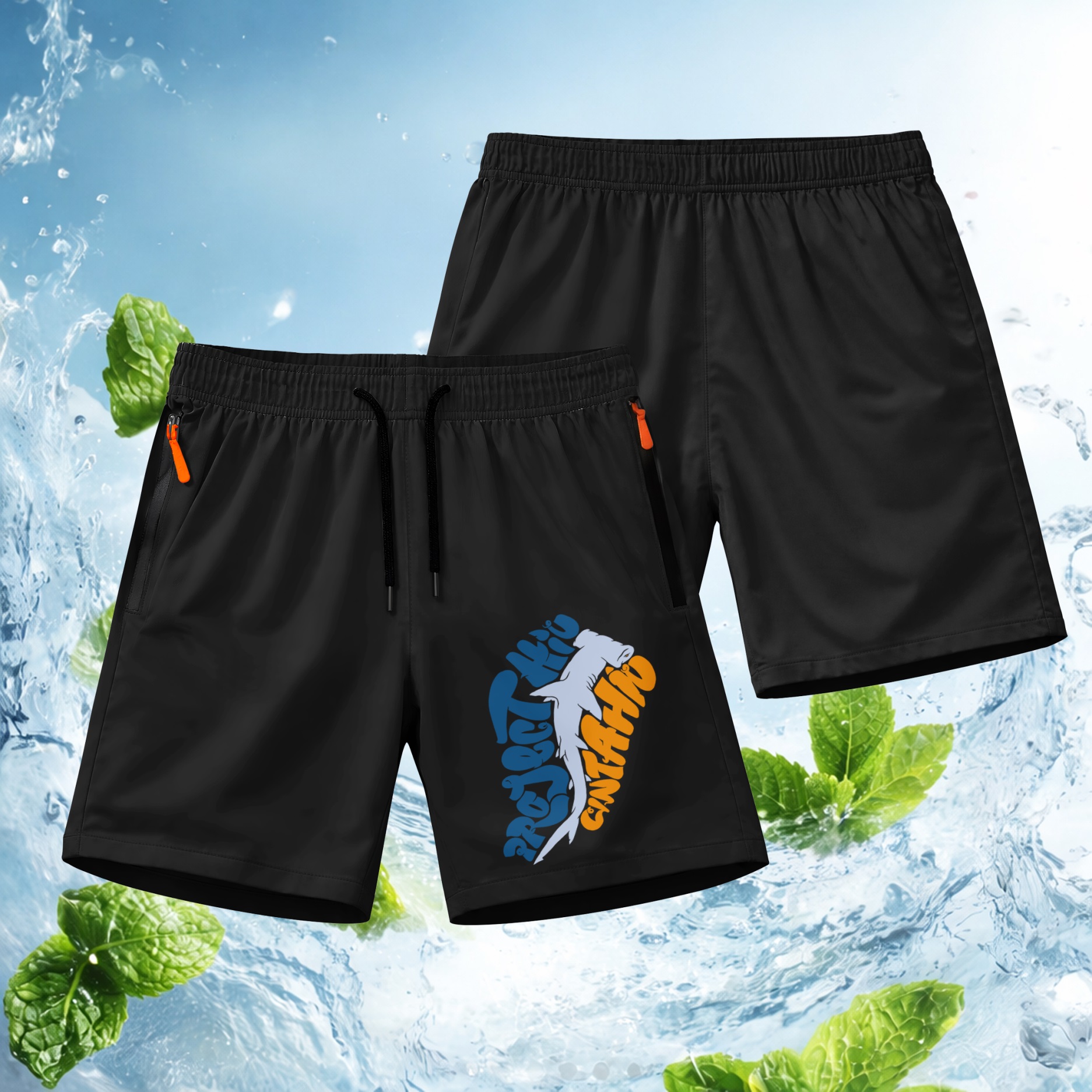Men’s Shark Fishing Shorts Lightweight Quick Dry Athletic Running Shorts – Saltwater Fishing Graphic Shorts with Zipper Pockets, Elastic Waist Drawstring, Breathable Gym Workout Shorts for Beach, Sport, Outdoor
