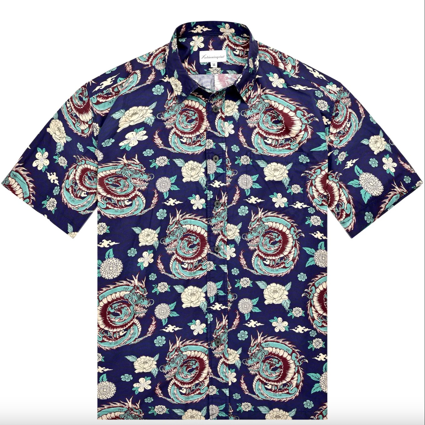 Men‘S Vacation NAVY BLUE Hawaii Printed Short Sleeve Shirt