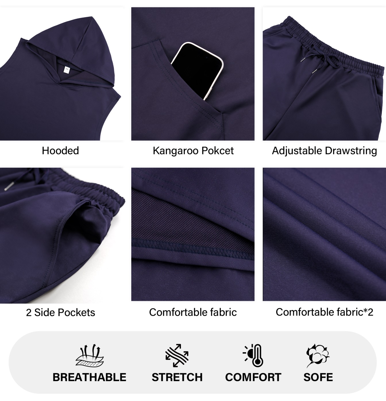 Washing Instructions: Dry Clean, Machine WashDesign Details: Drawstring, Sleeveless Hoodie