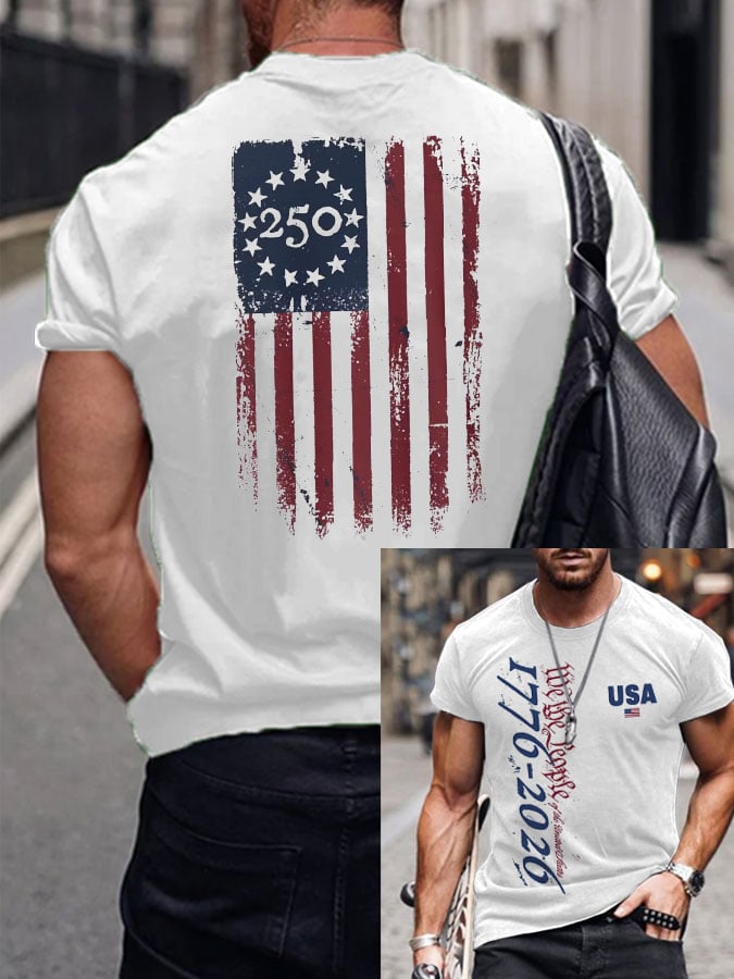 Men's 250th Anniversary National Flag Print Casual Short-Sleeved T-Shirt