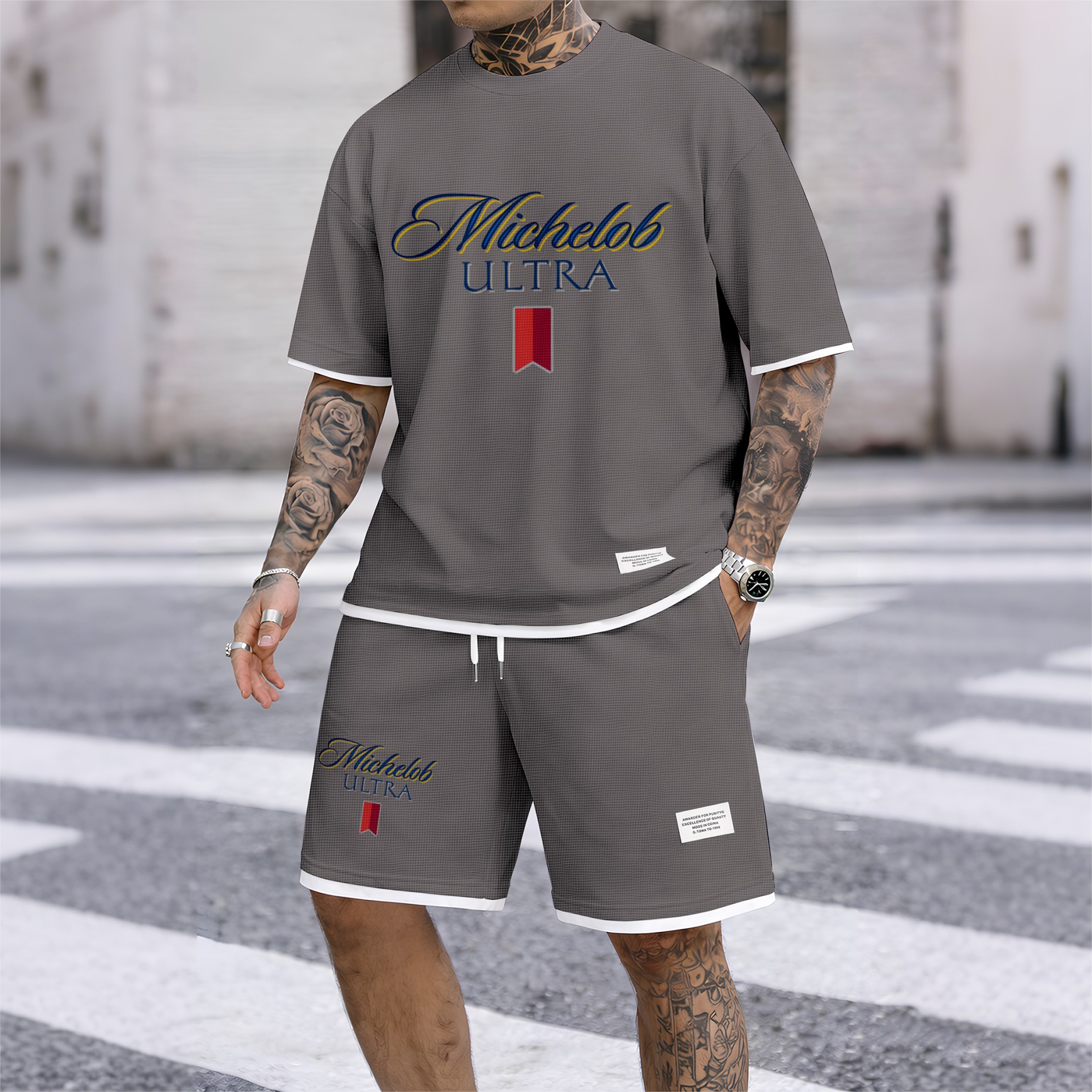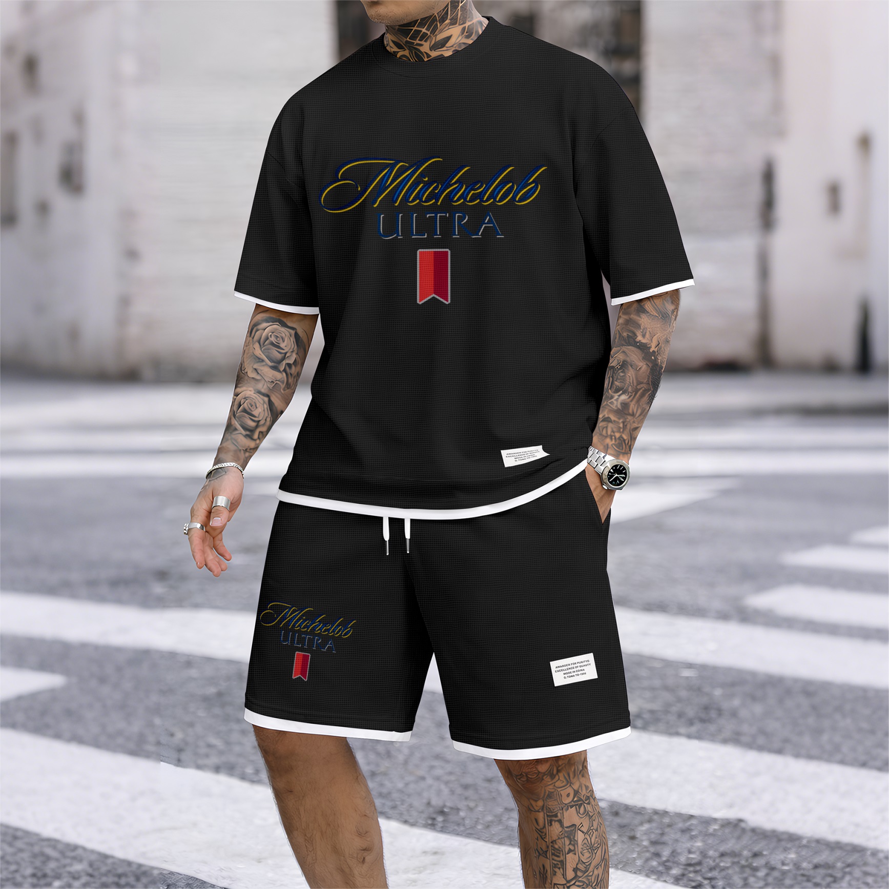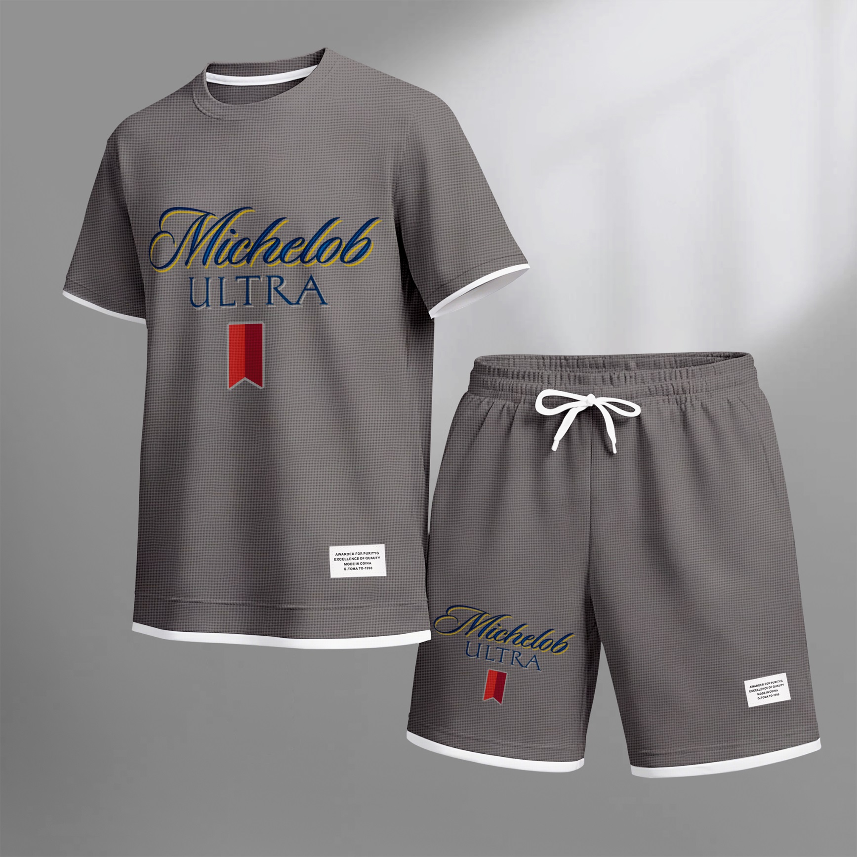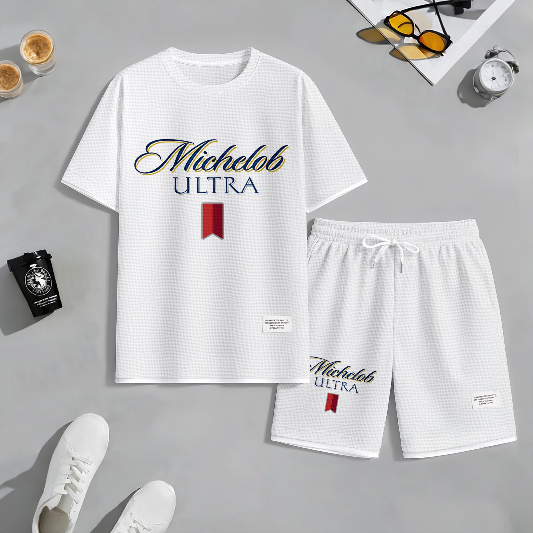 Men's Beer And Beverage Printed Drawstring Shorts Set, Suitable For Spring And Summer Wear, Casual Summer Set, Including Short-Sleeved Shirt And Shorts, Suitable For Everyday Wear And Sports 09