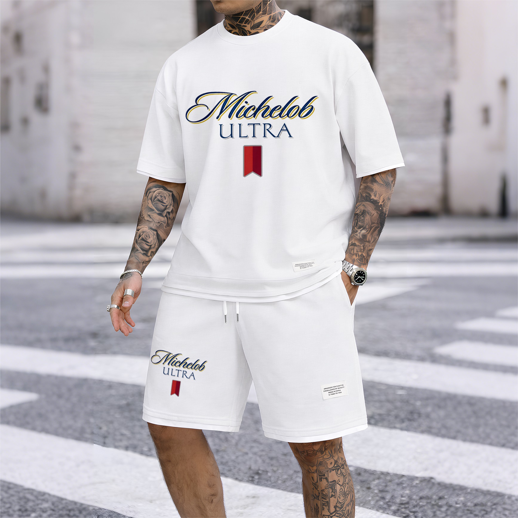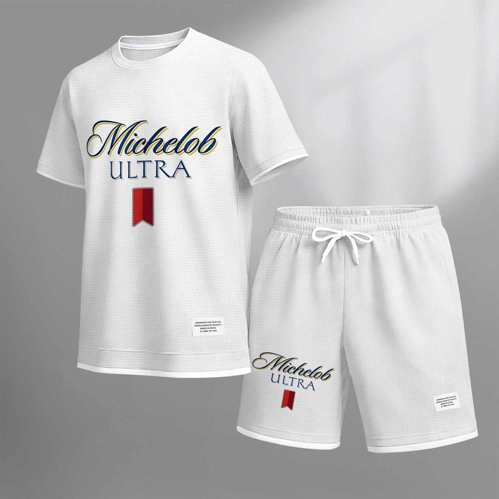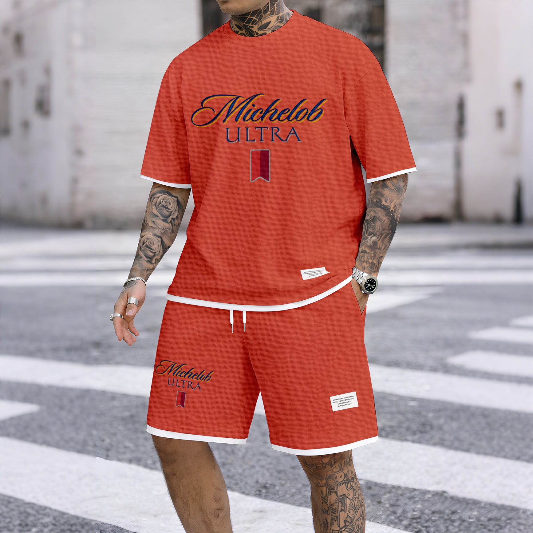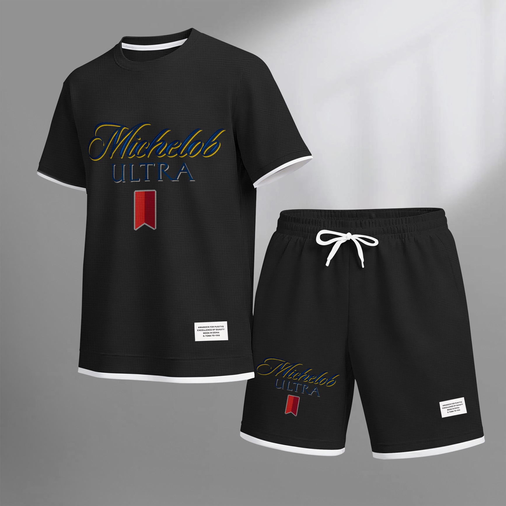 Men's Beer And Beverage Printed Drawstring Shorts Set, Suitable For Spring And Summer Wear, Casual Summer Set, Including Short-Sleeved Shirt And Shorts, Suitable For Everyday Wear And Sports 09