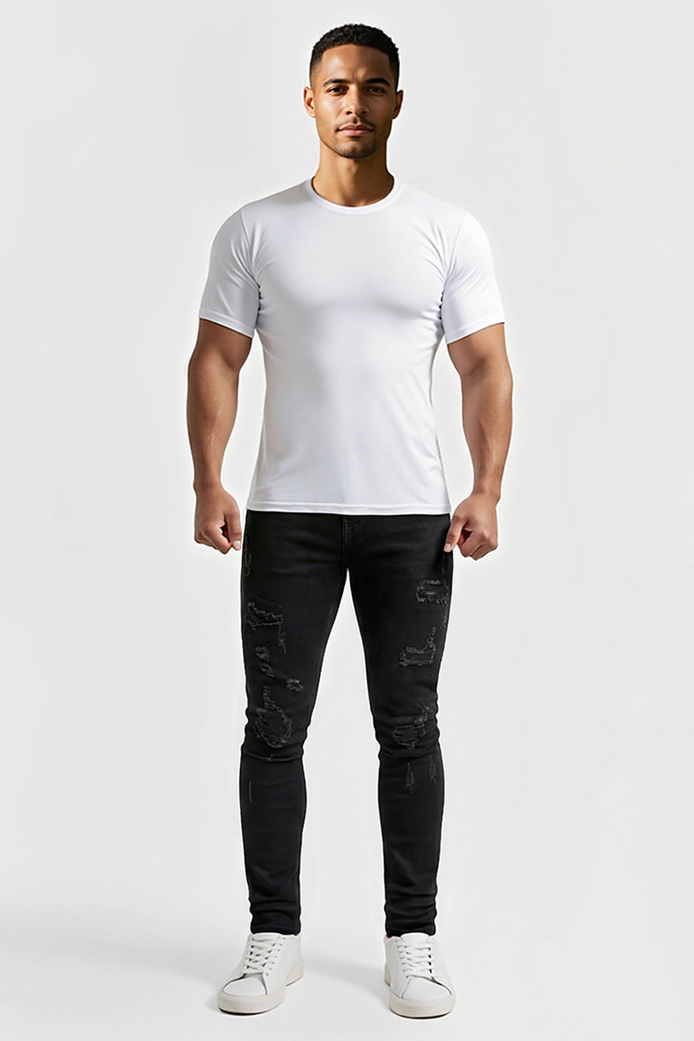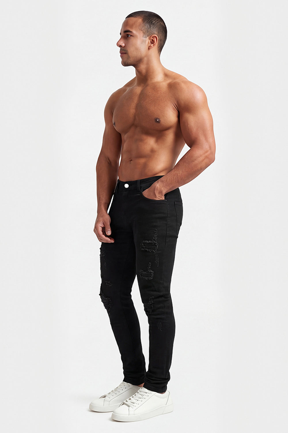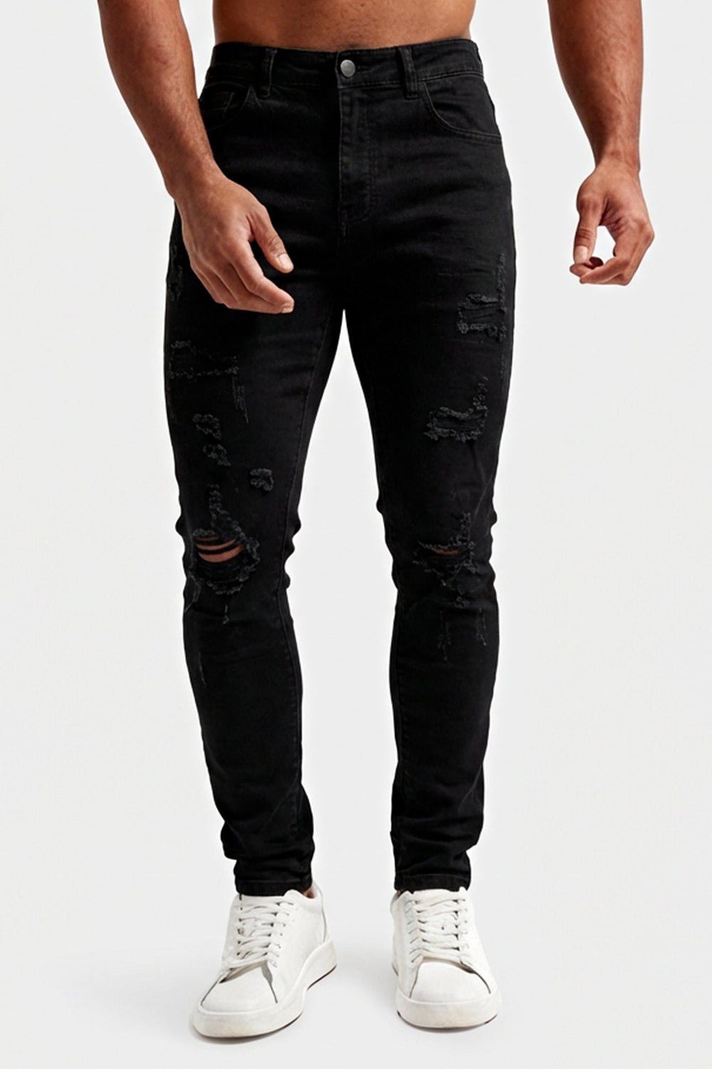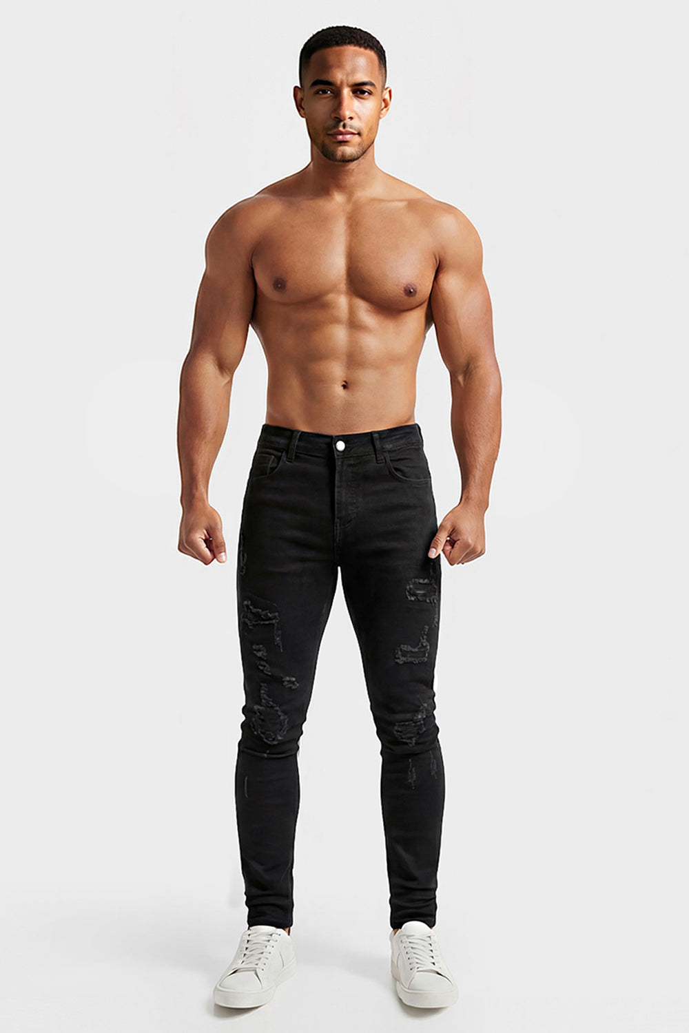 Exceptionally soft, lightweight, and flexible men’s skinny jeans designed for a sleek, sculpted fit. The black ripped denim perfectly contours your waist and legs, providing incredible comfort from morning to night — the ultimate pair of jeans for any occasion.
