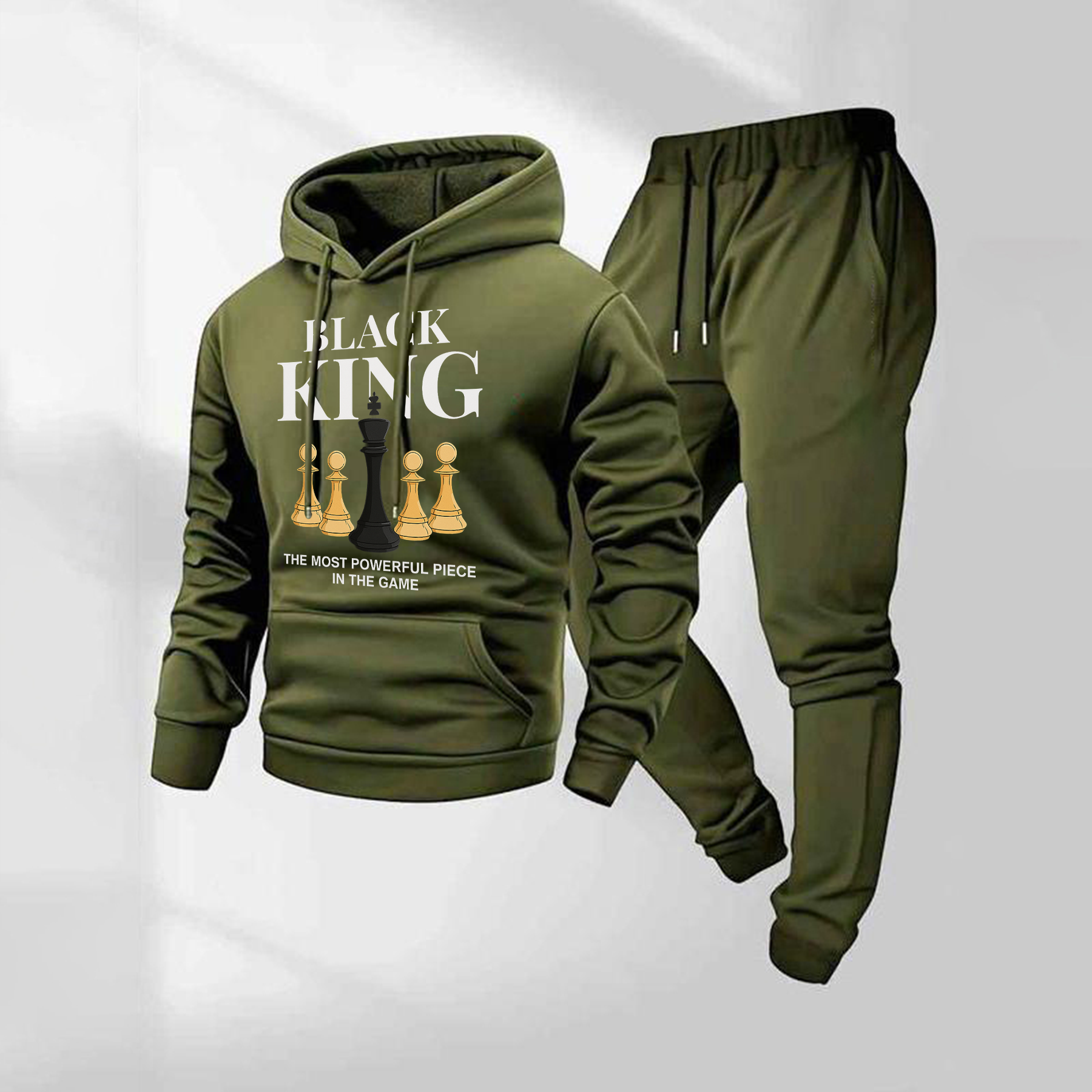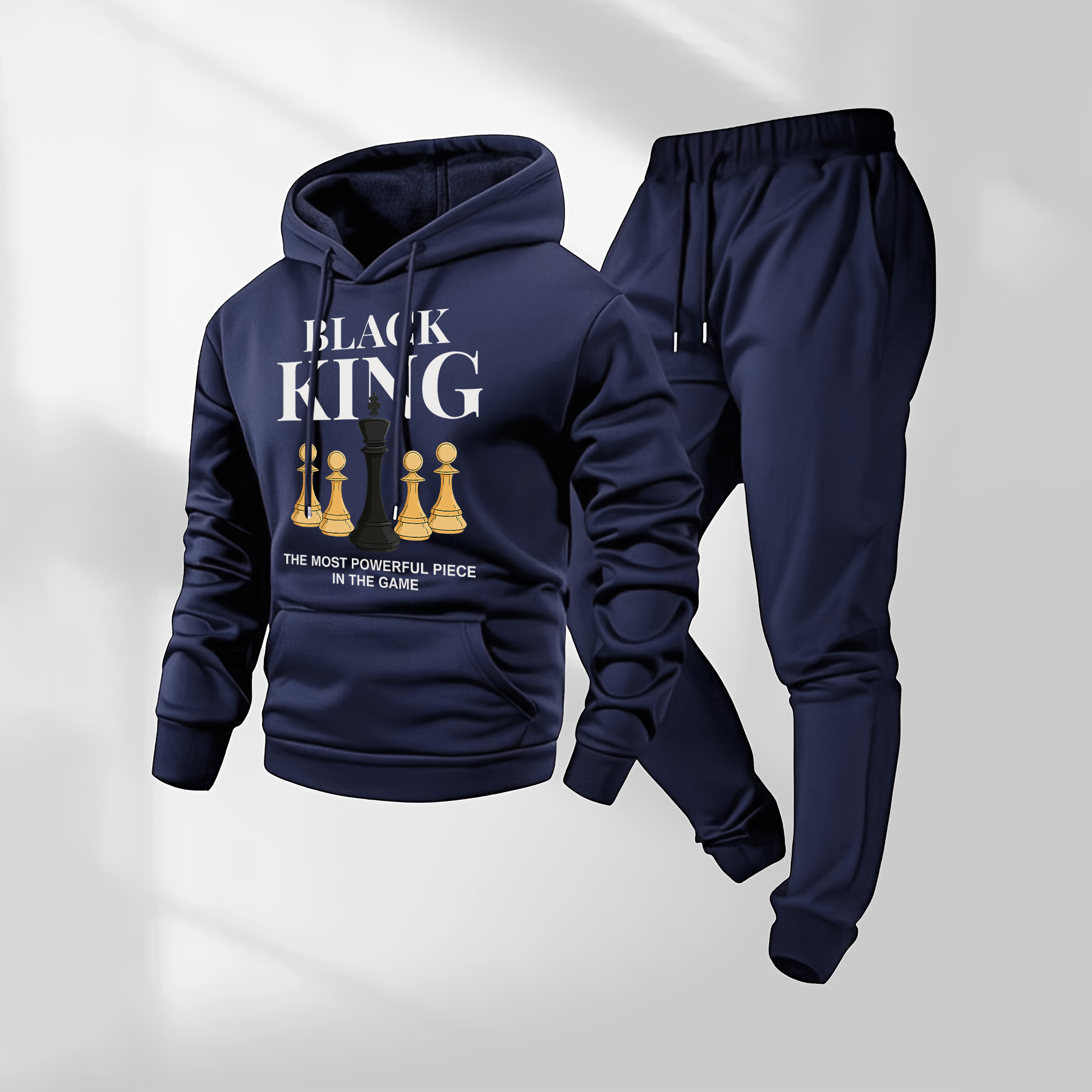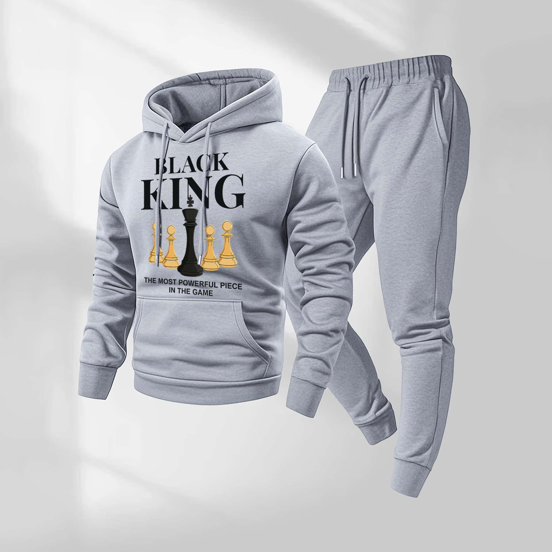 Men's Black King Letter Pattern Print Hoodie and Drawstring Sweatpants Set, Menswear, Casual Athletic Long Sleeve Hooded Jacket & Trousers for Fall & Winter, Men's Clothing for Daily Wear, Sportswear Indoor Outdoor, Tracksuit, Athleisure