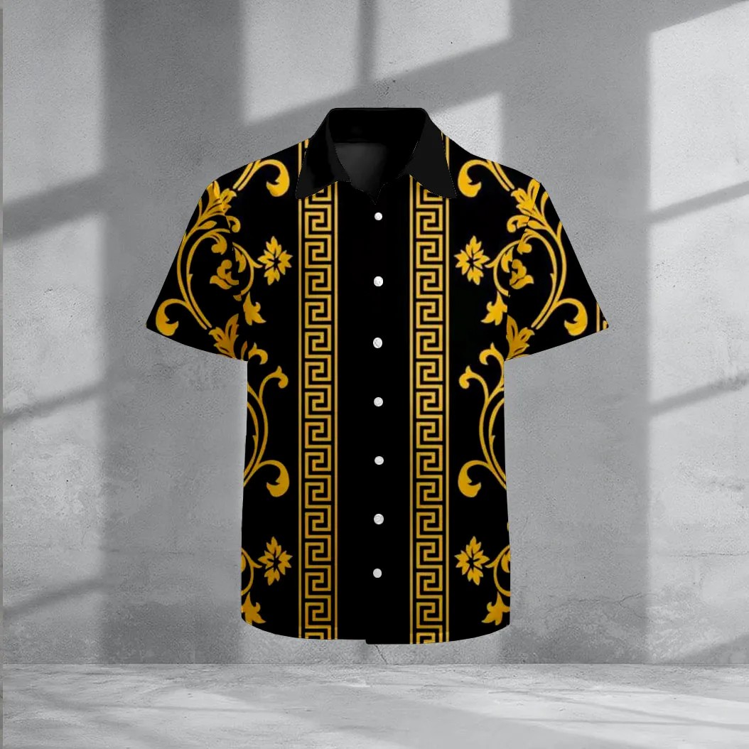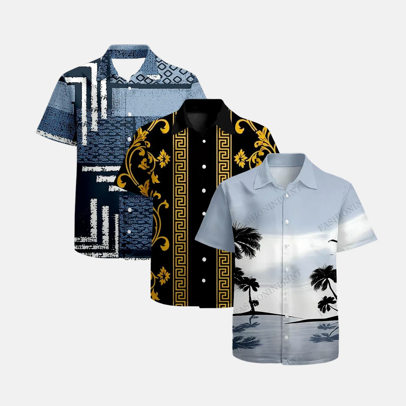 Men's Casual Brightly Colored Patterns Three-Piece Printed Short-Sleeve Shirt