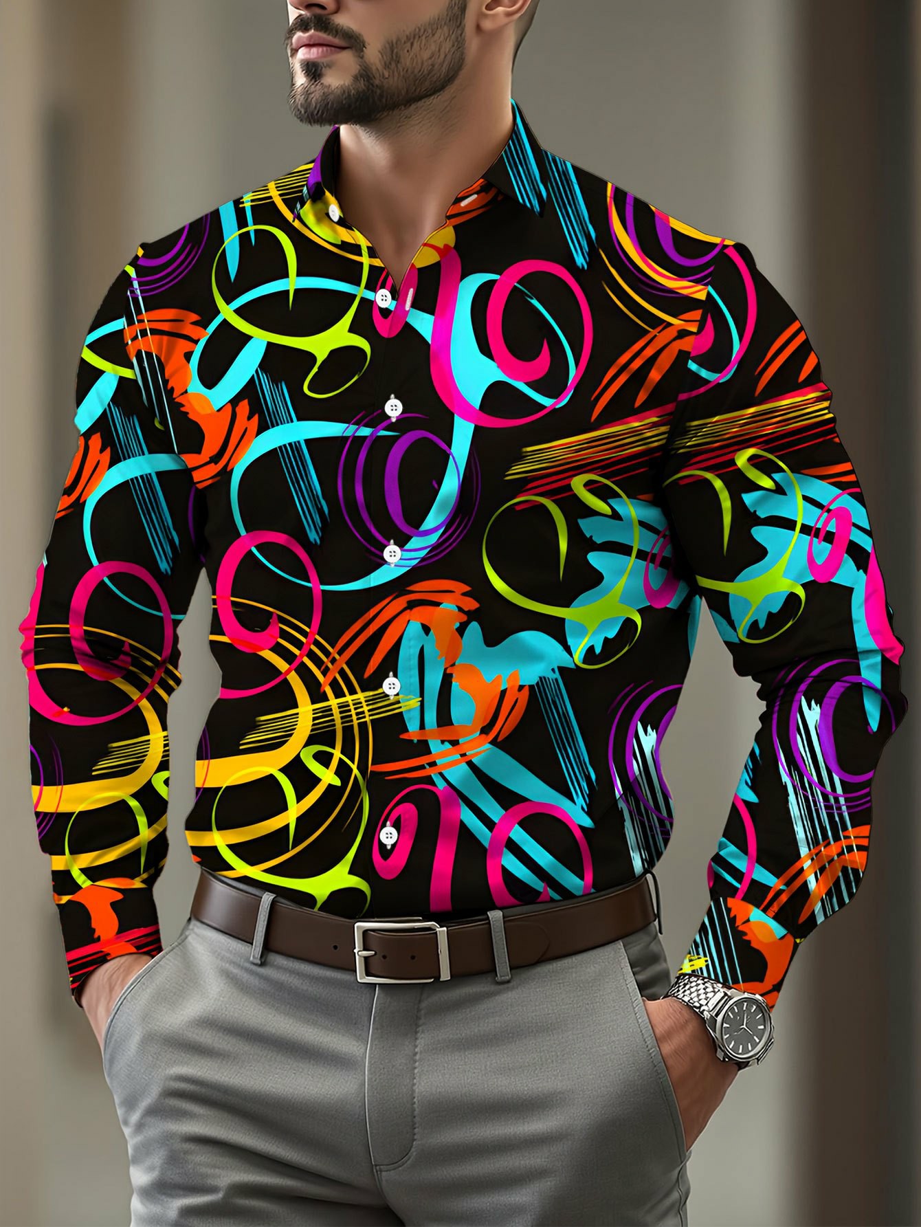 Men's Casual Black & Multi Color Print Long-Sleeve Shirt