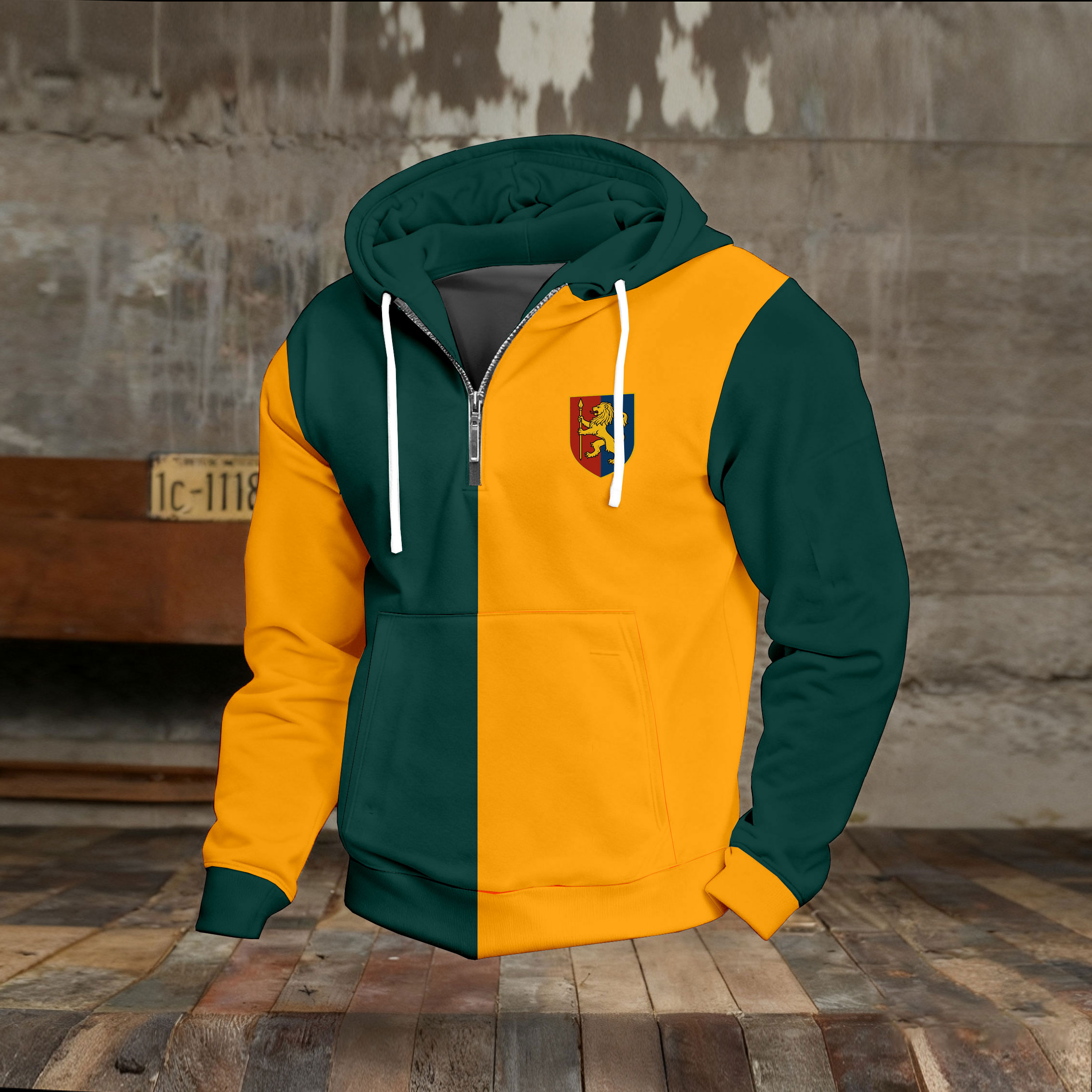 Men's Casual Color Matching Printed Pocket Long Sleeved Zipper Hoodies&Sweatshirt Tops
