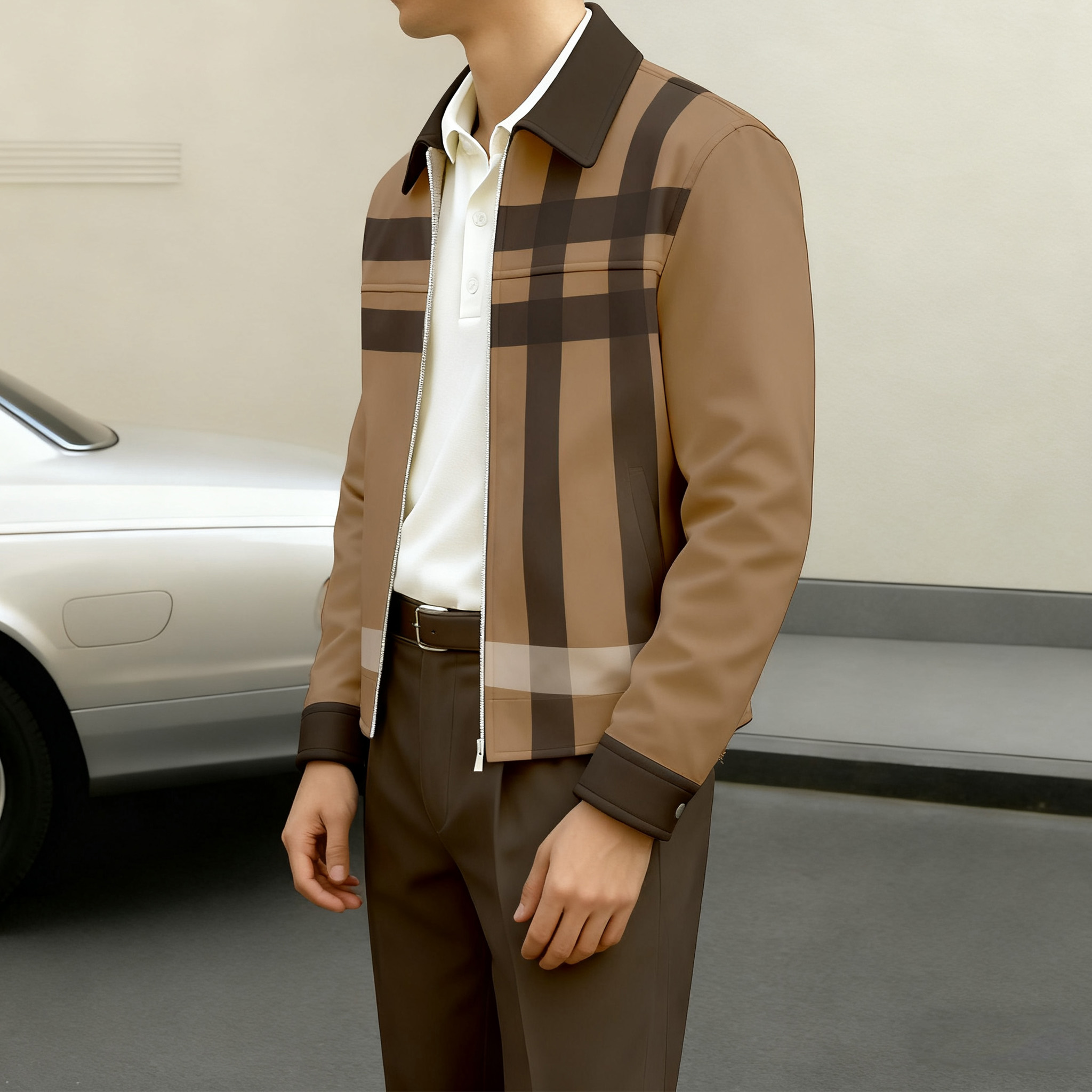 Men's Casual Color Matching Printed Zipper Long Sleeved Zipper
