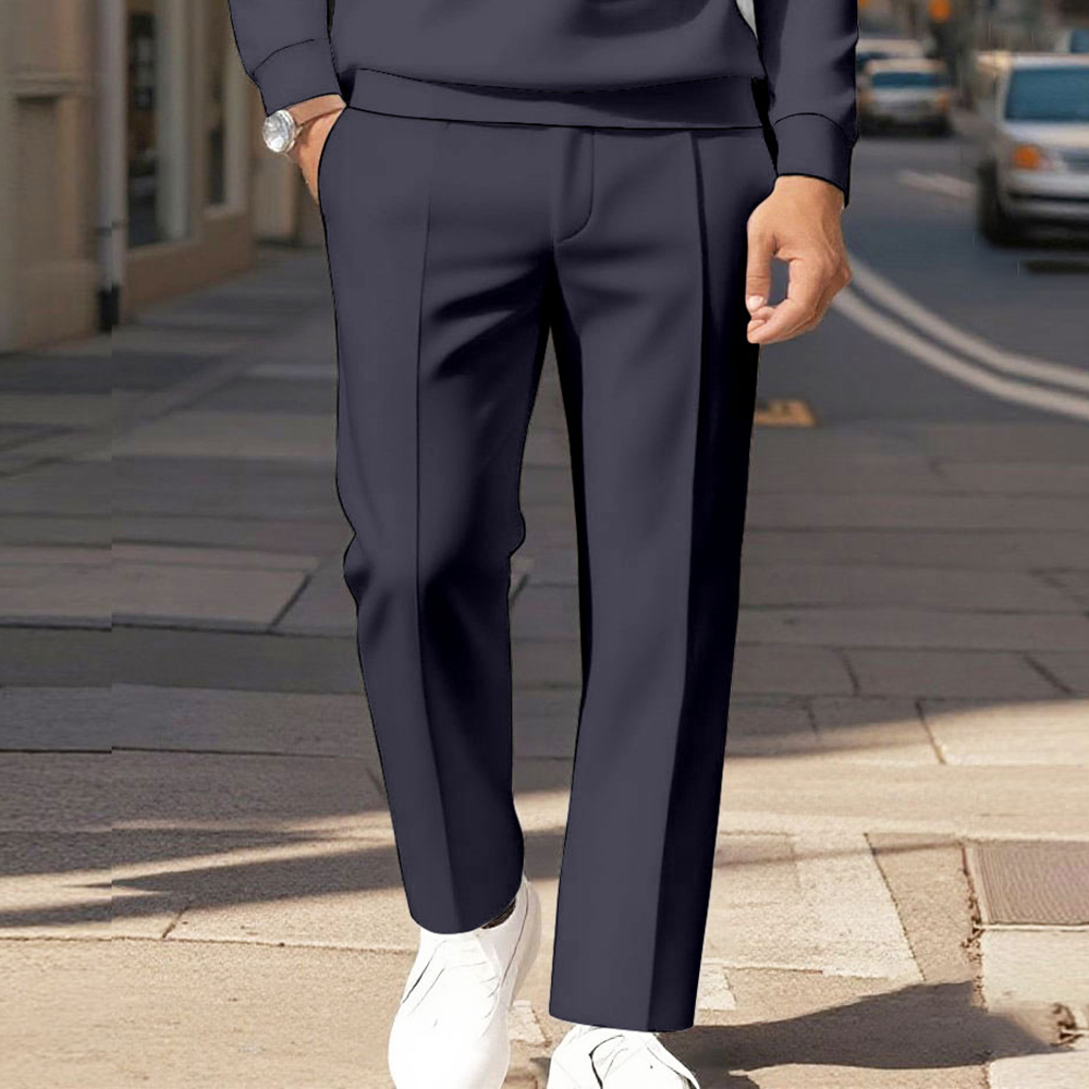 Men's Casual Dark Gray Color Matching Printed Polo-Collar Zipper Long Sleeved Trousers Two-Piece Set