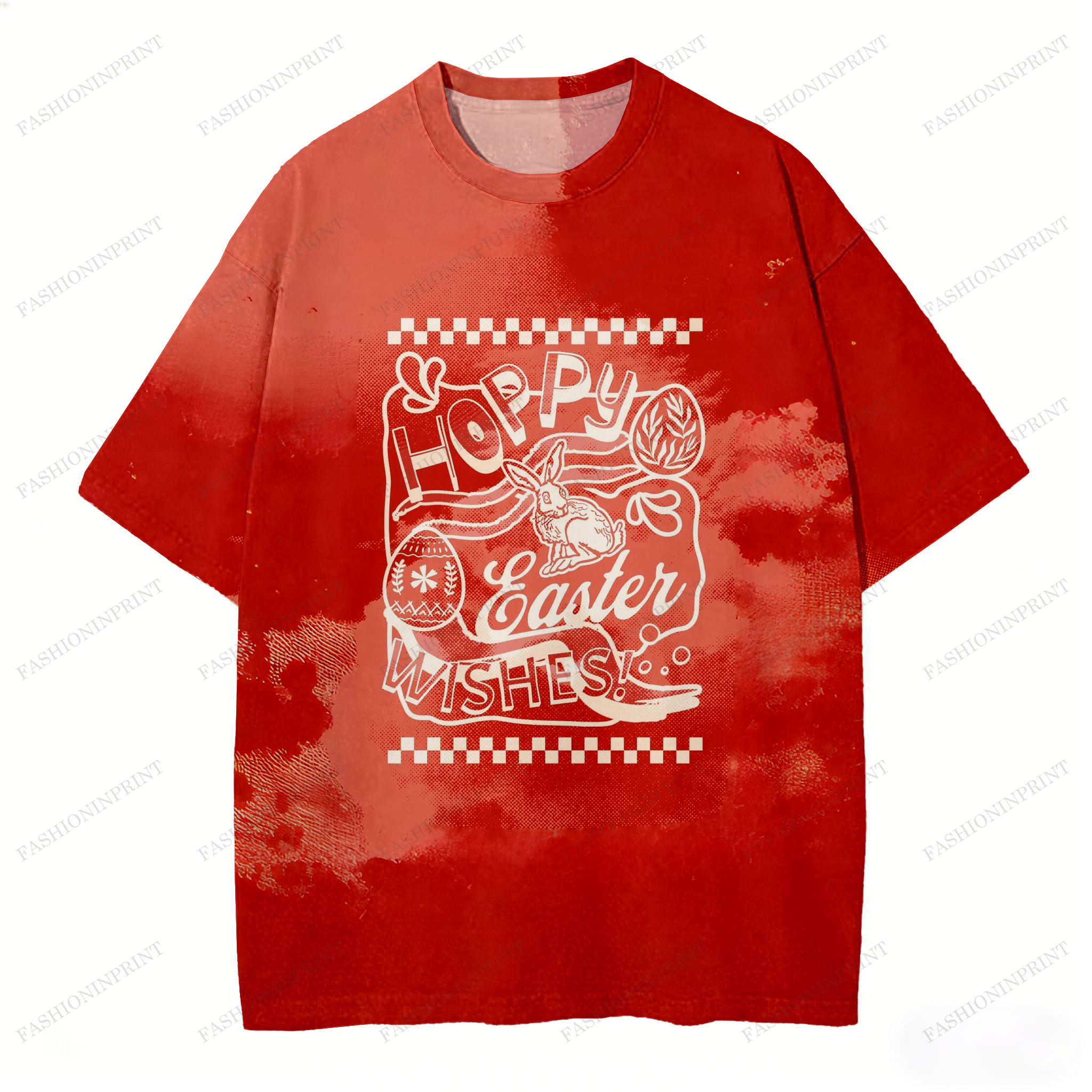 Easter Sunday Men's Casual Easter Printed Red Short Sleeved T-Shirt