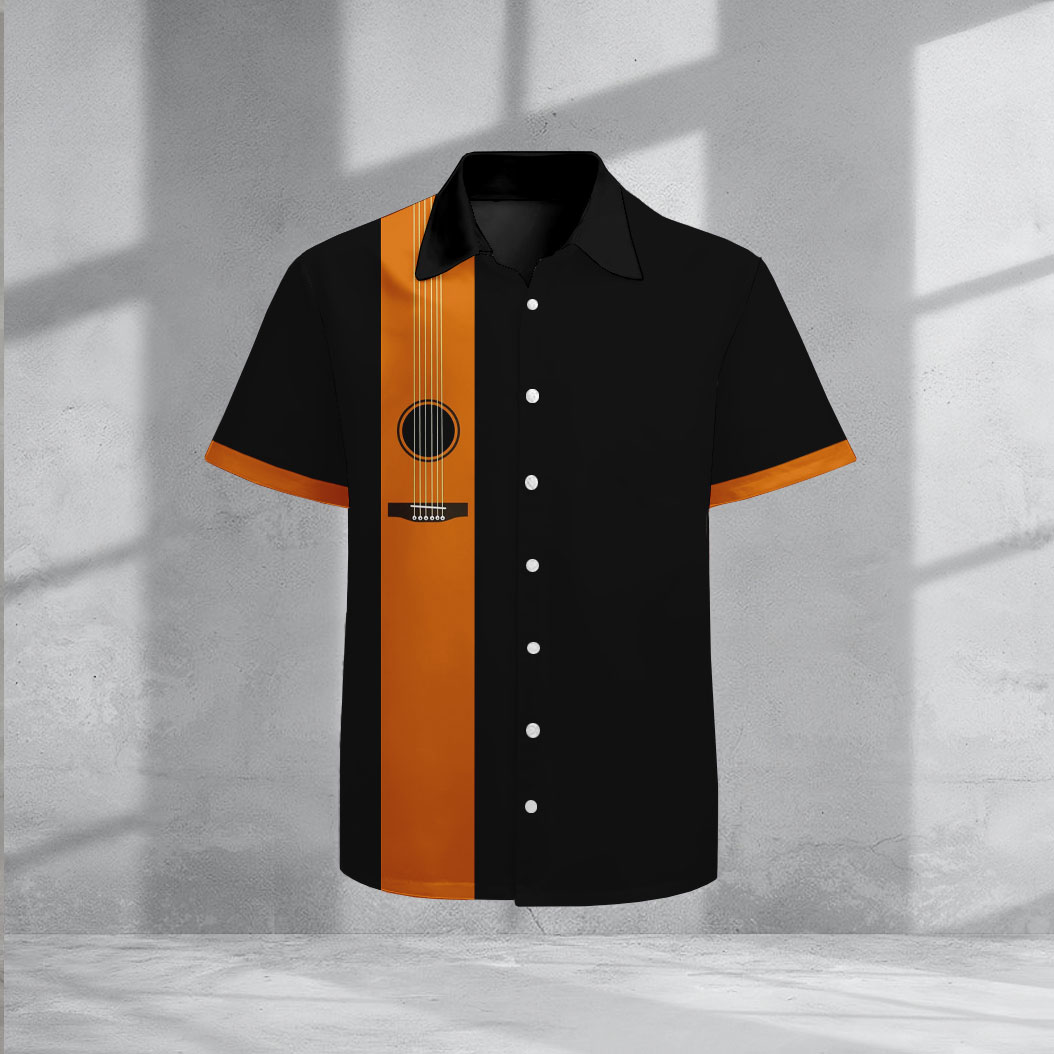 Men's Casual Lapel Orange & Black Color Matching Printed Short Sleeve Shirts