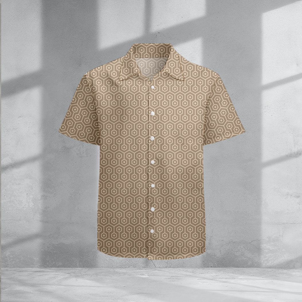 Men's Casual Lapel Brown Vintage Printed Short Sleeve Shirts