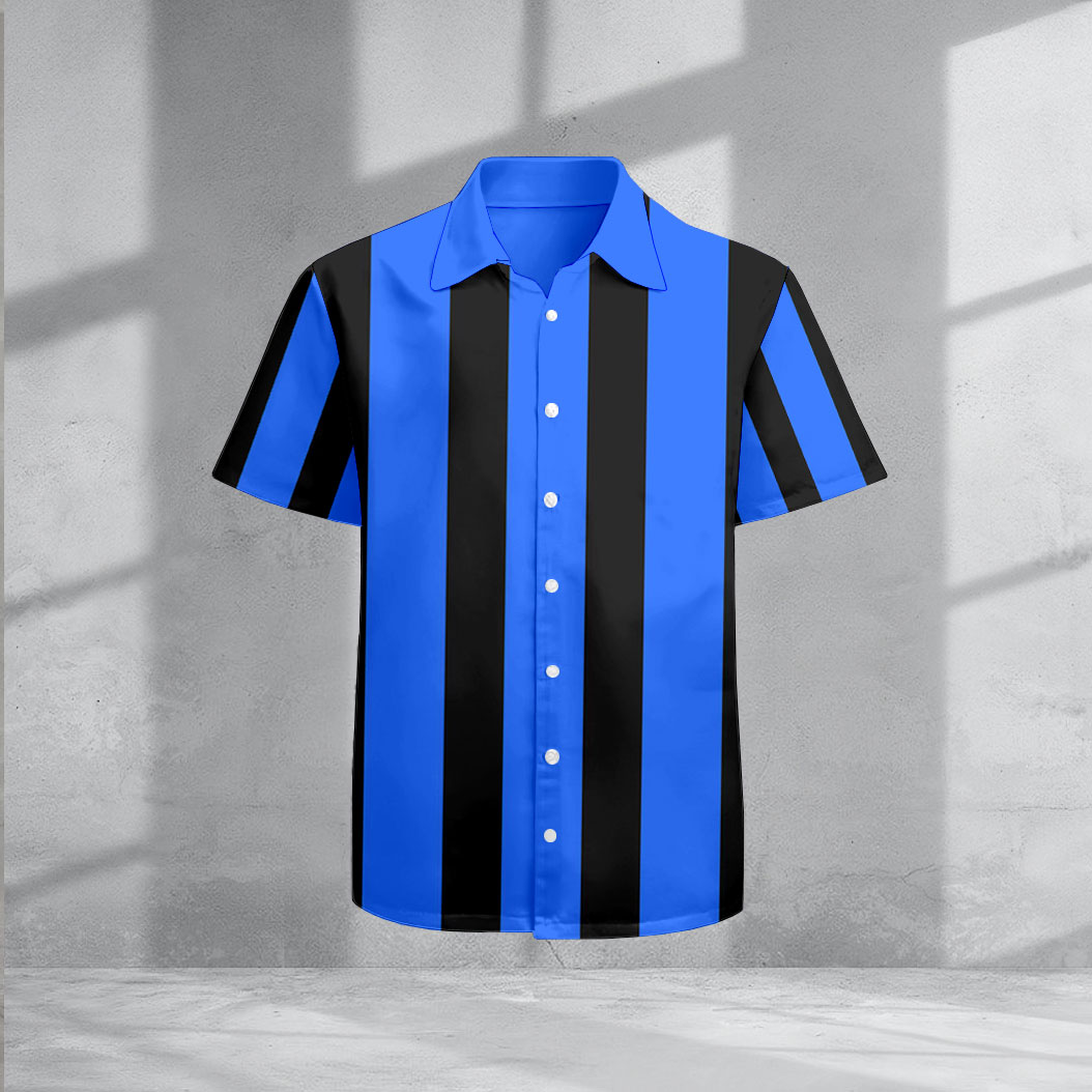 Men's Casual Lapel Royal Blue & Black Striped Printed Short Sleeve Shirts