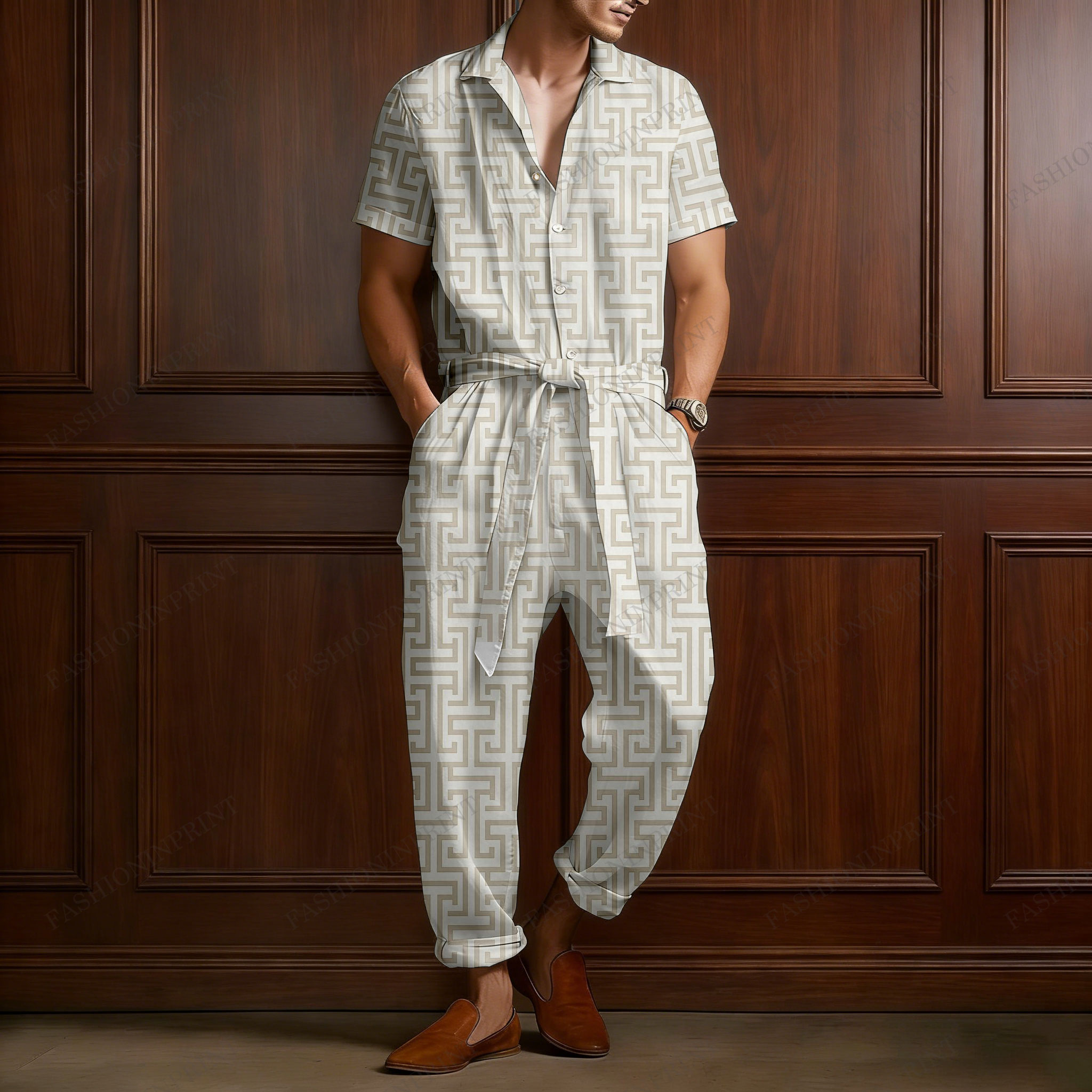 Men's Casual White Color Short-Sleeved Jumpsuit