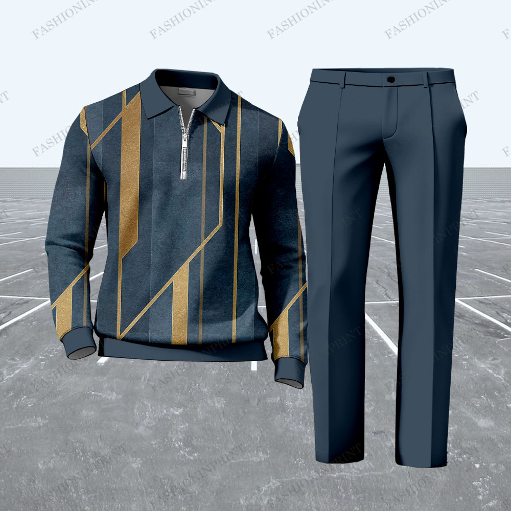 Men's Casual Navy Blue Zip- Up Sweatshirt and Pants Two- Piece Set