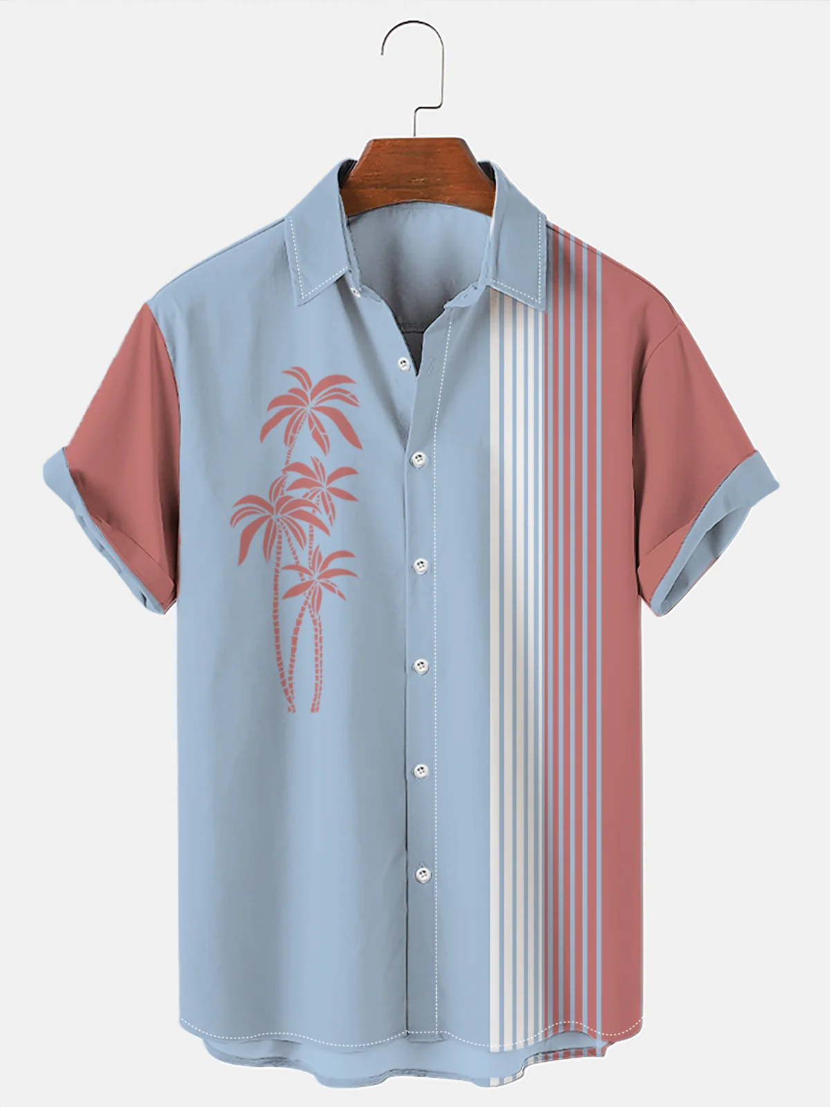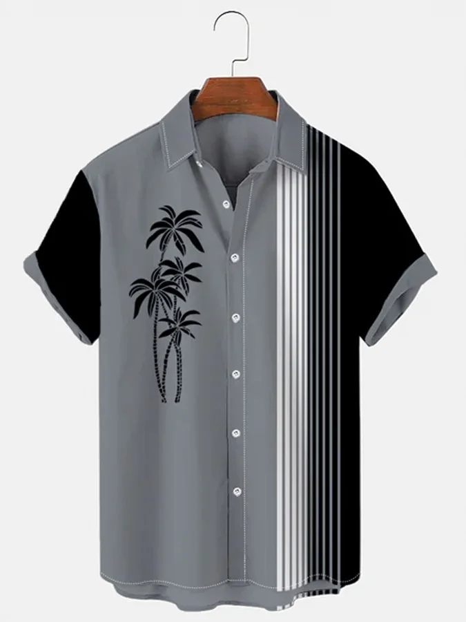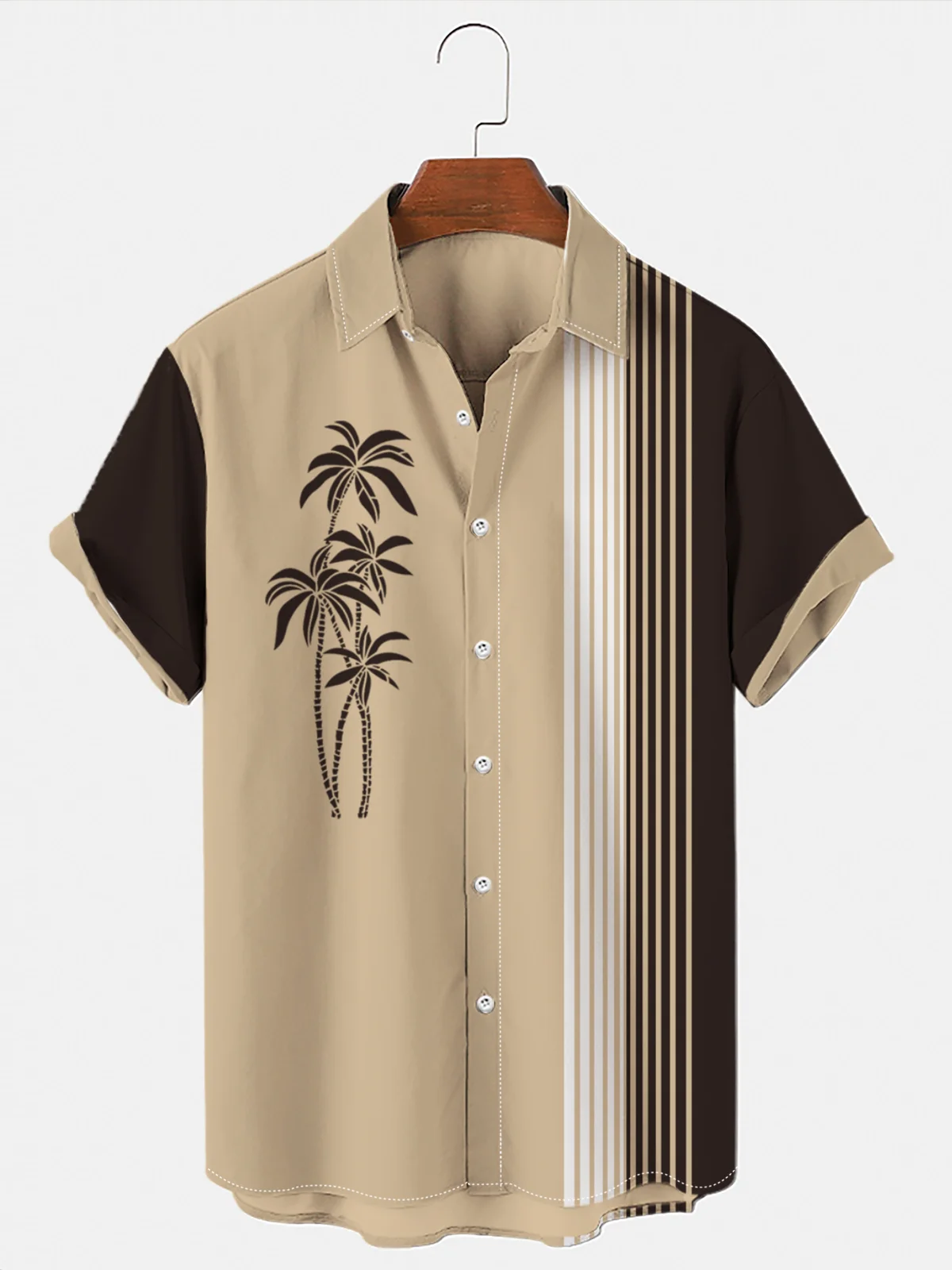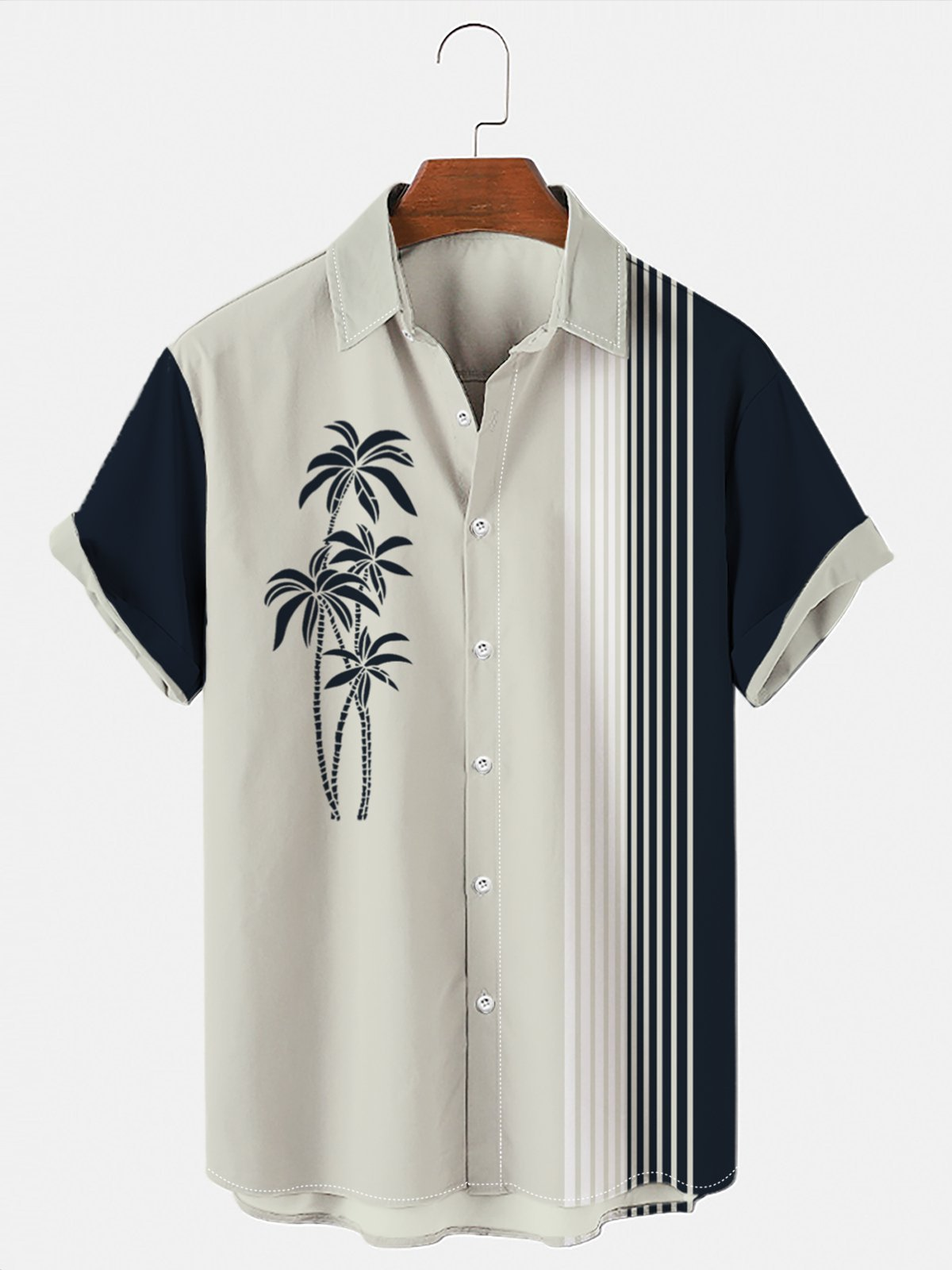 Men's Casual Palm Tree Print Short Sleeve Shirt