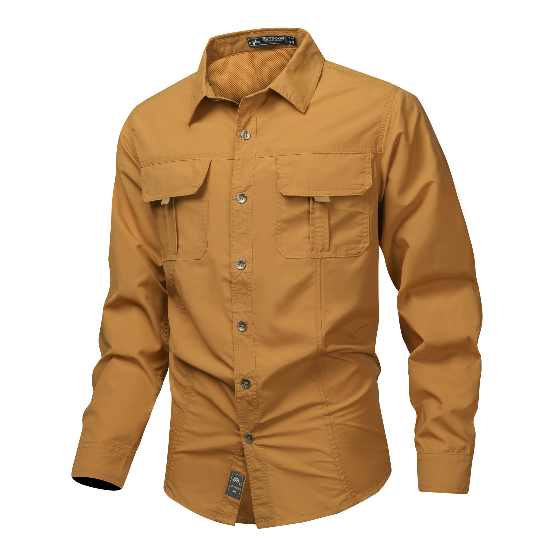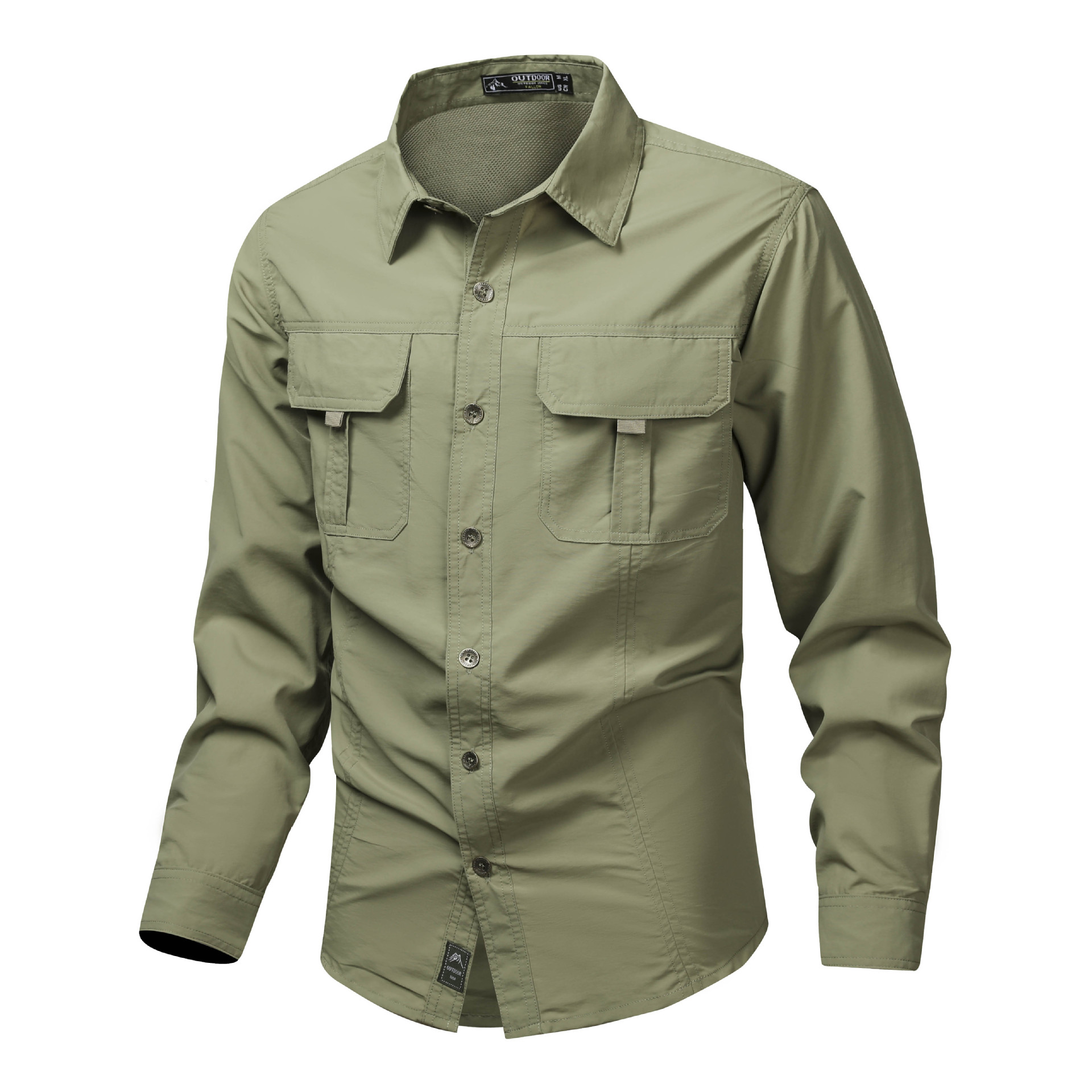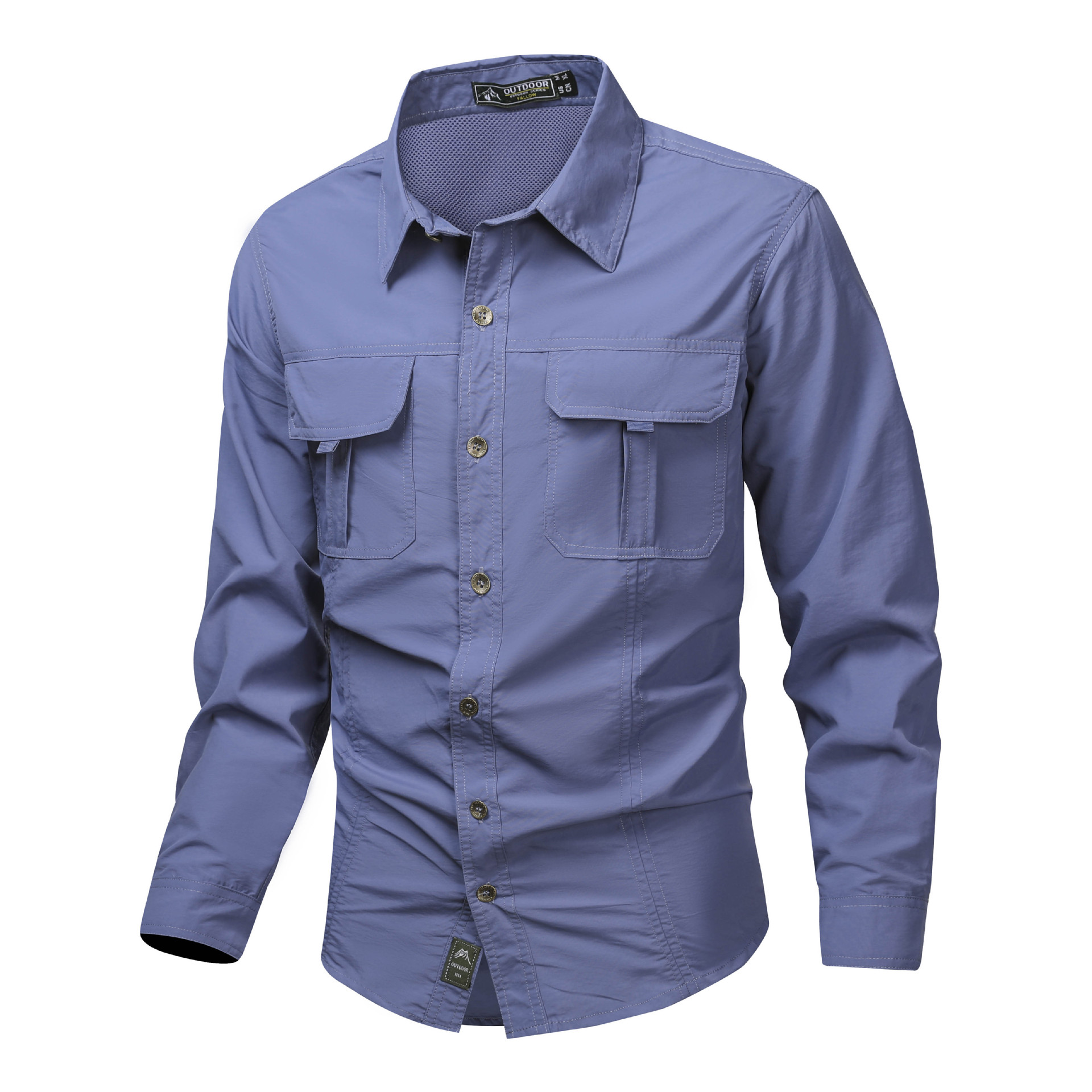 Men's Casual Pocket Long-Sleeve Ice Silk Shirts