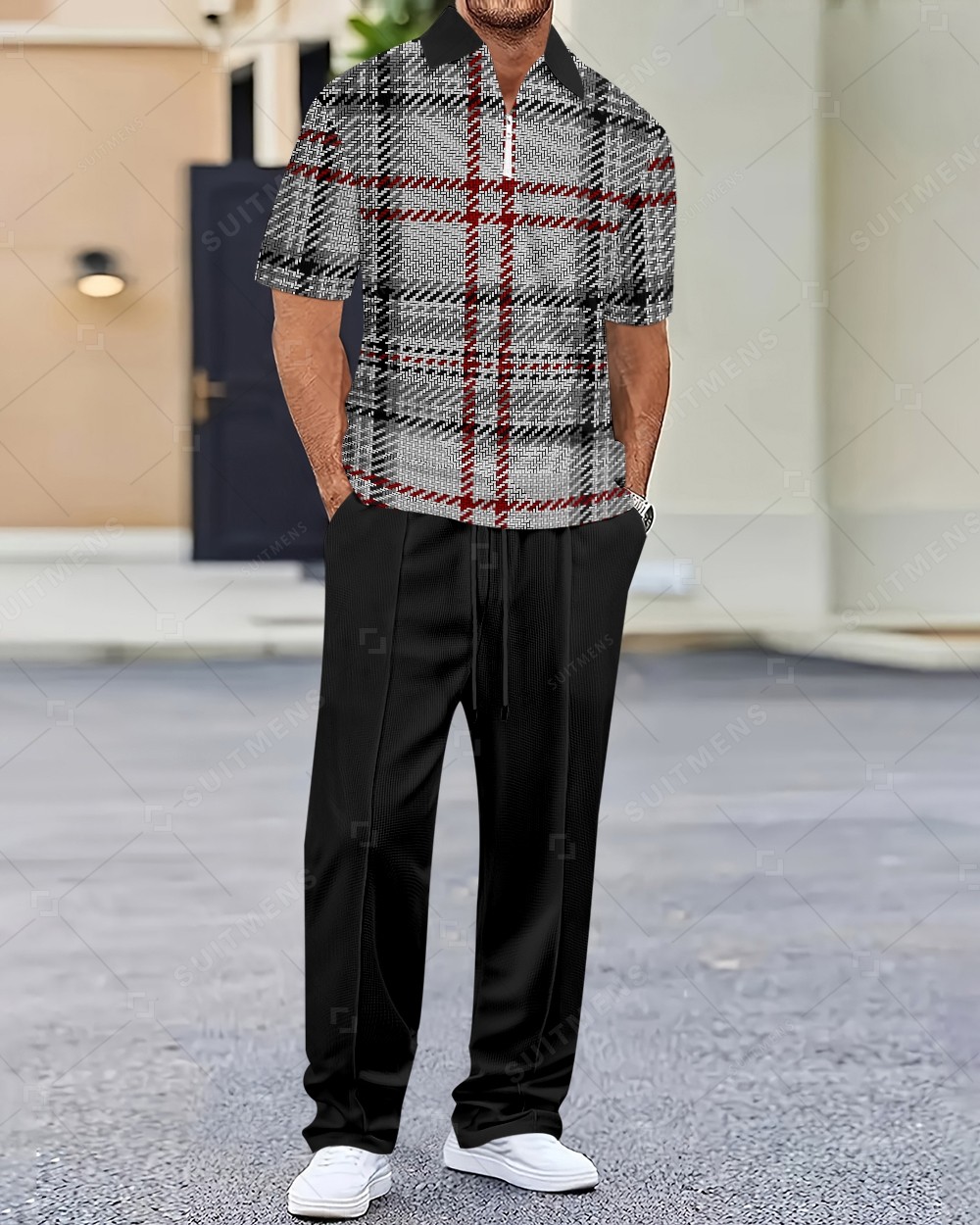 Men's Check Print Polo Short Sleeve Set - 1145