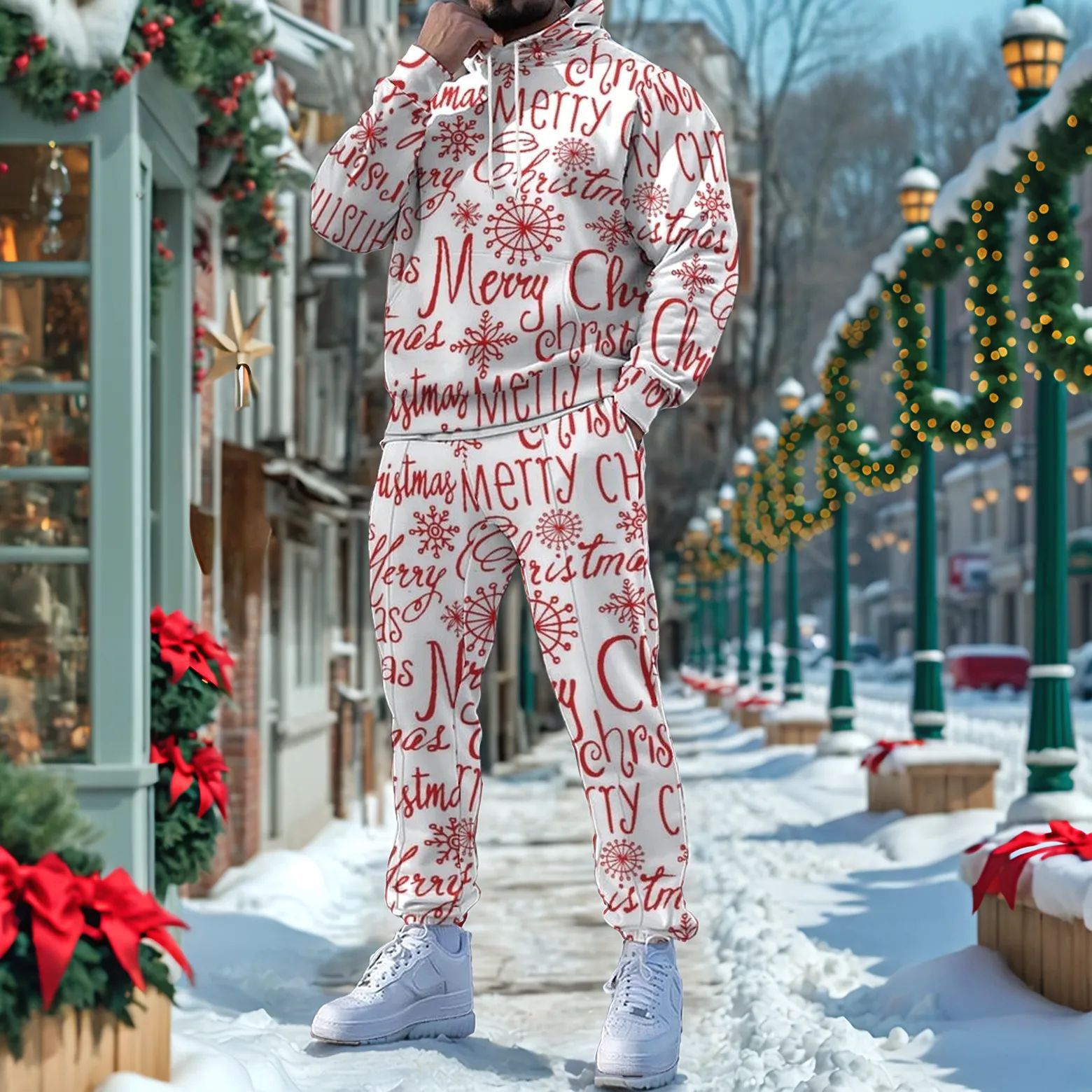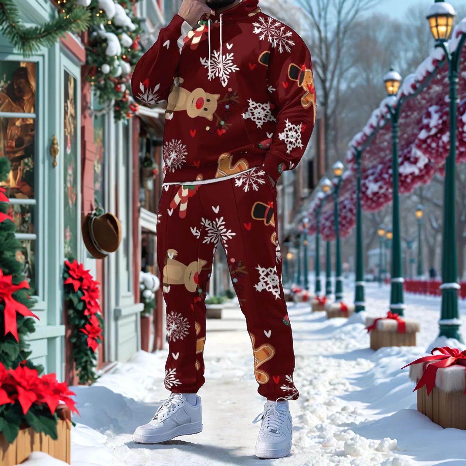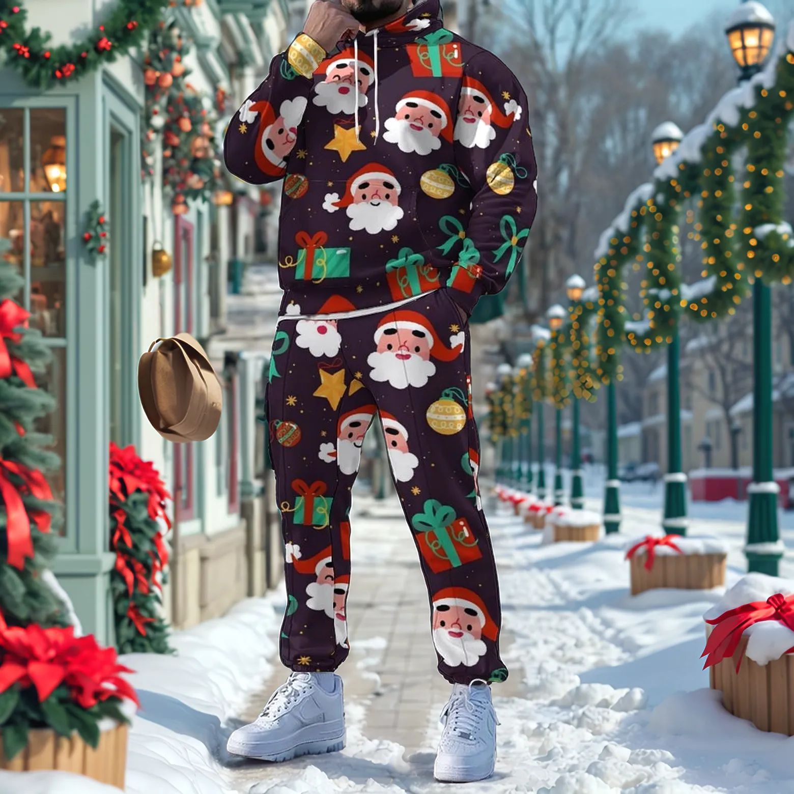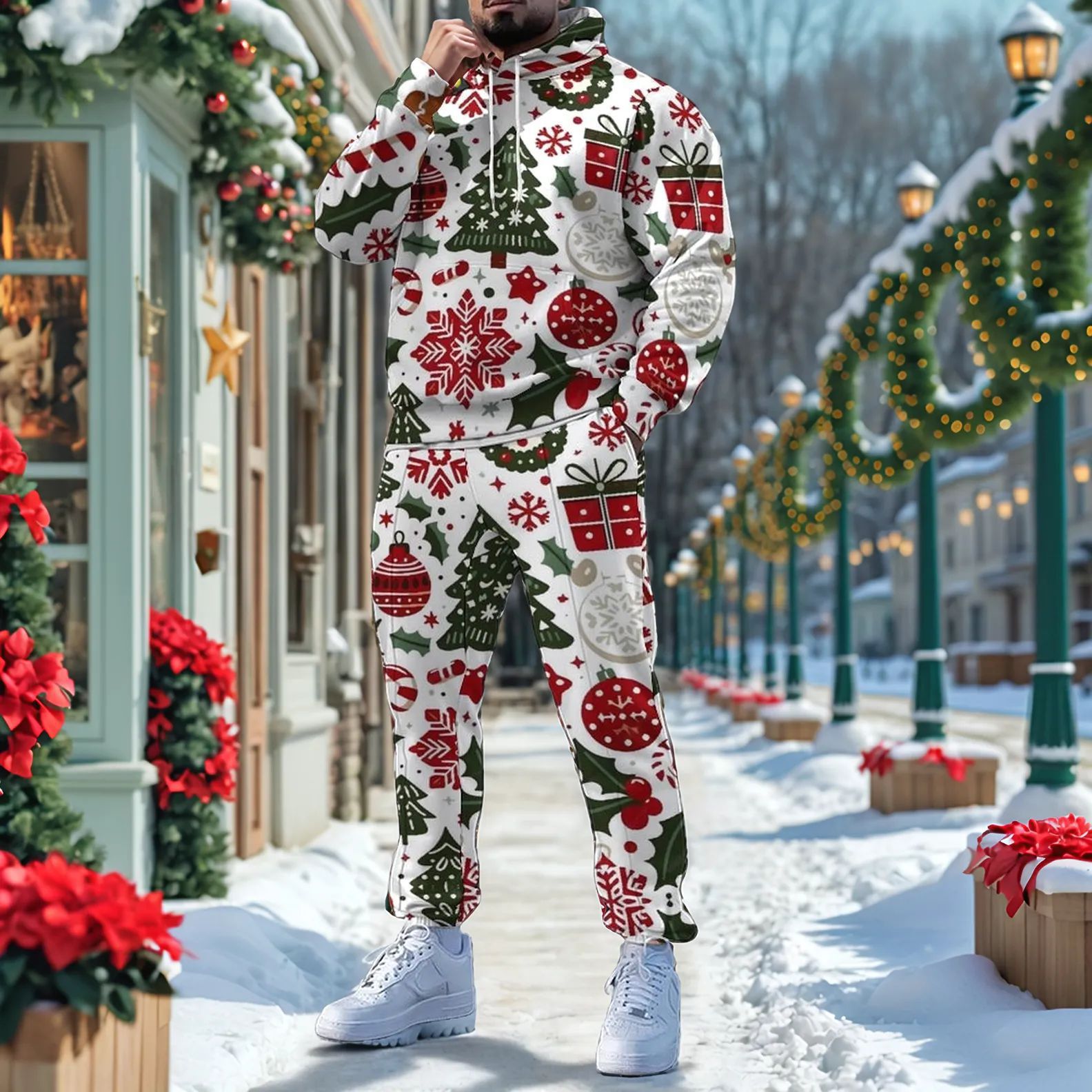 Men's Christmas Printed Long-Sleeved Trousers Two-Piece Sets