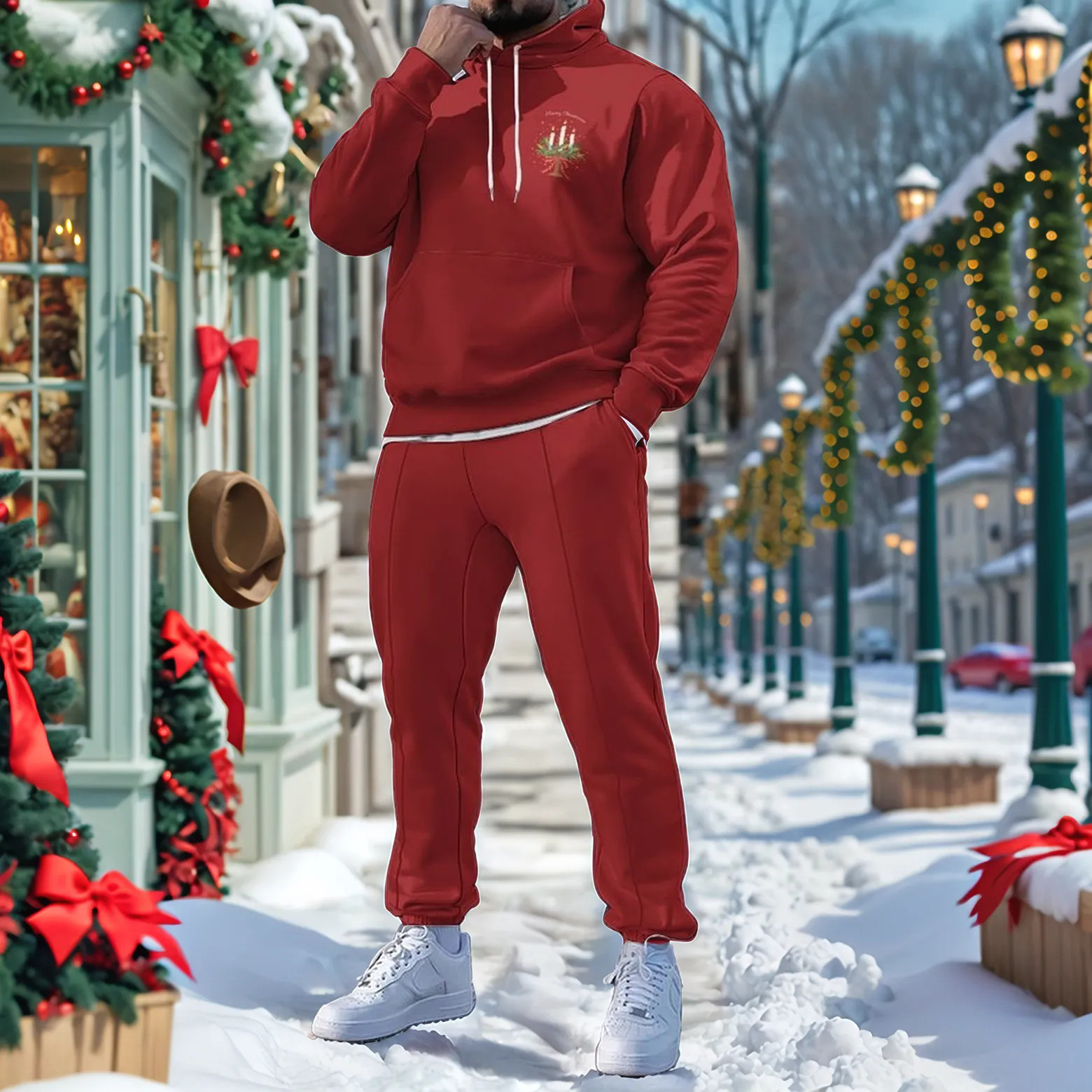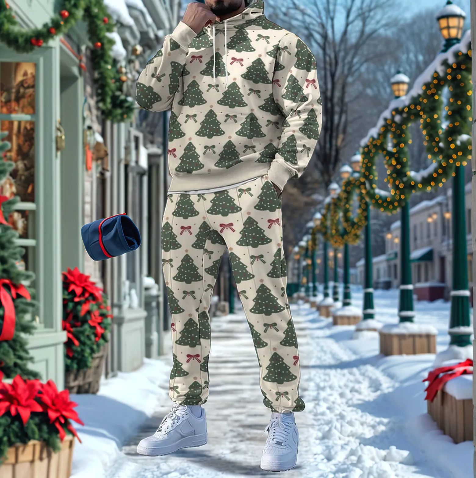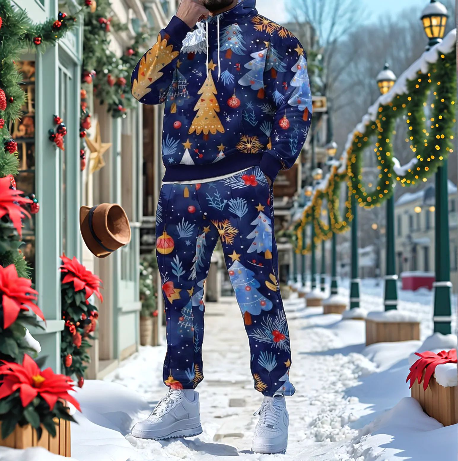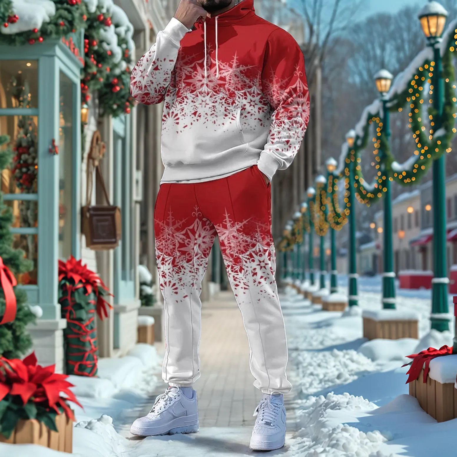 Men's Christmas Printed Long-Sleeved Trousers Two-Piece Sets