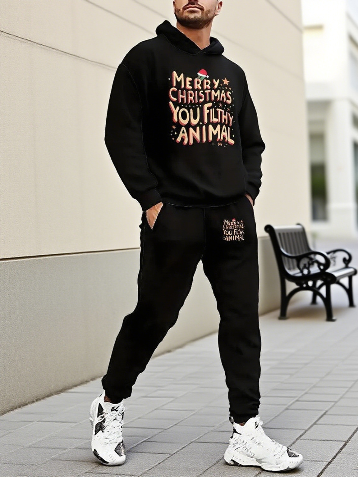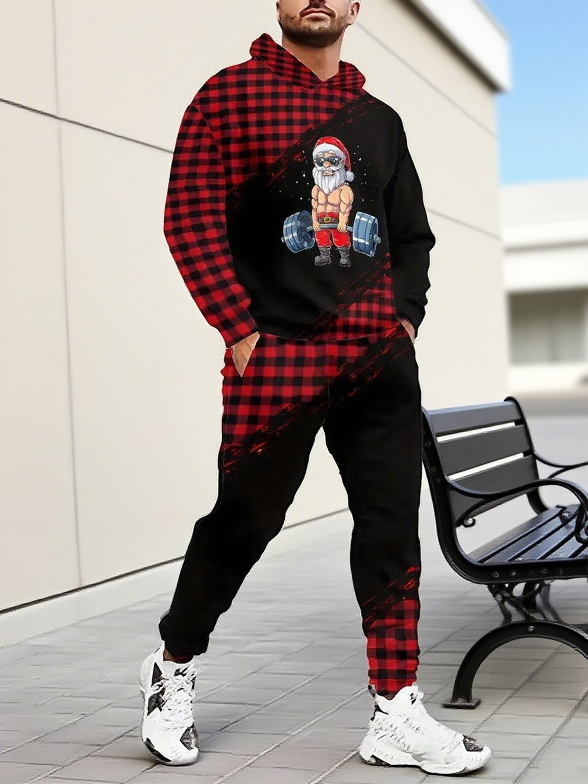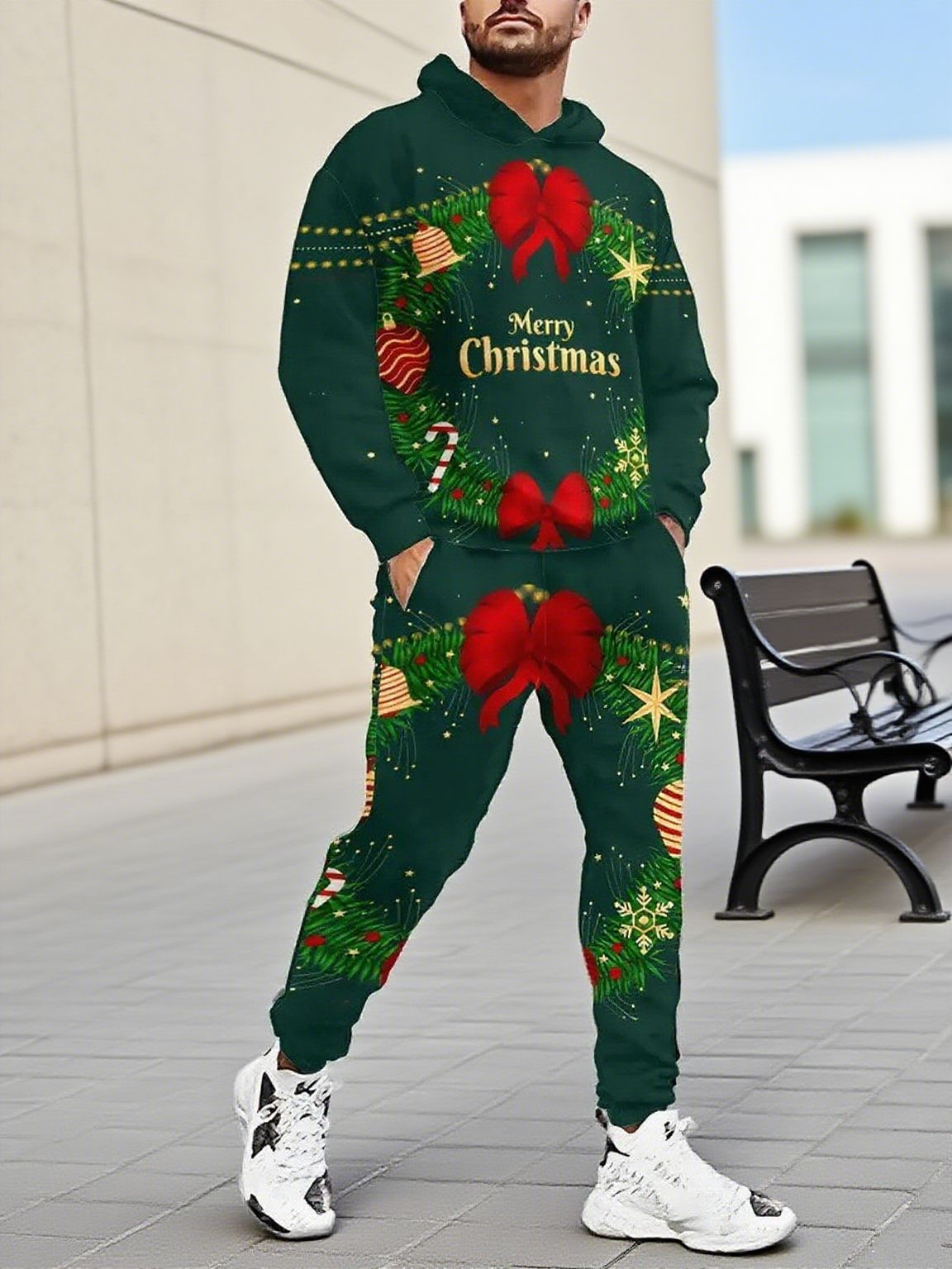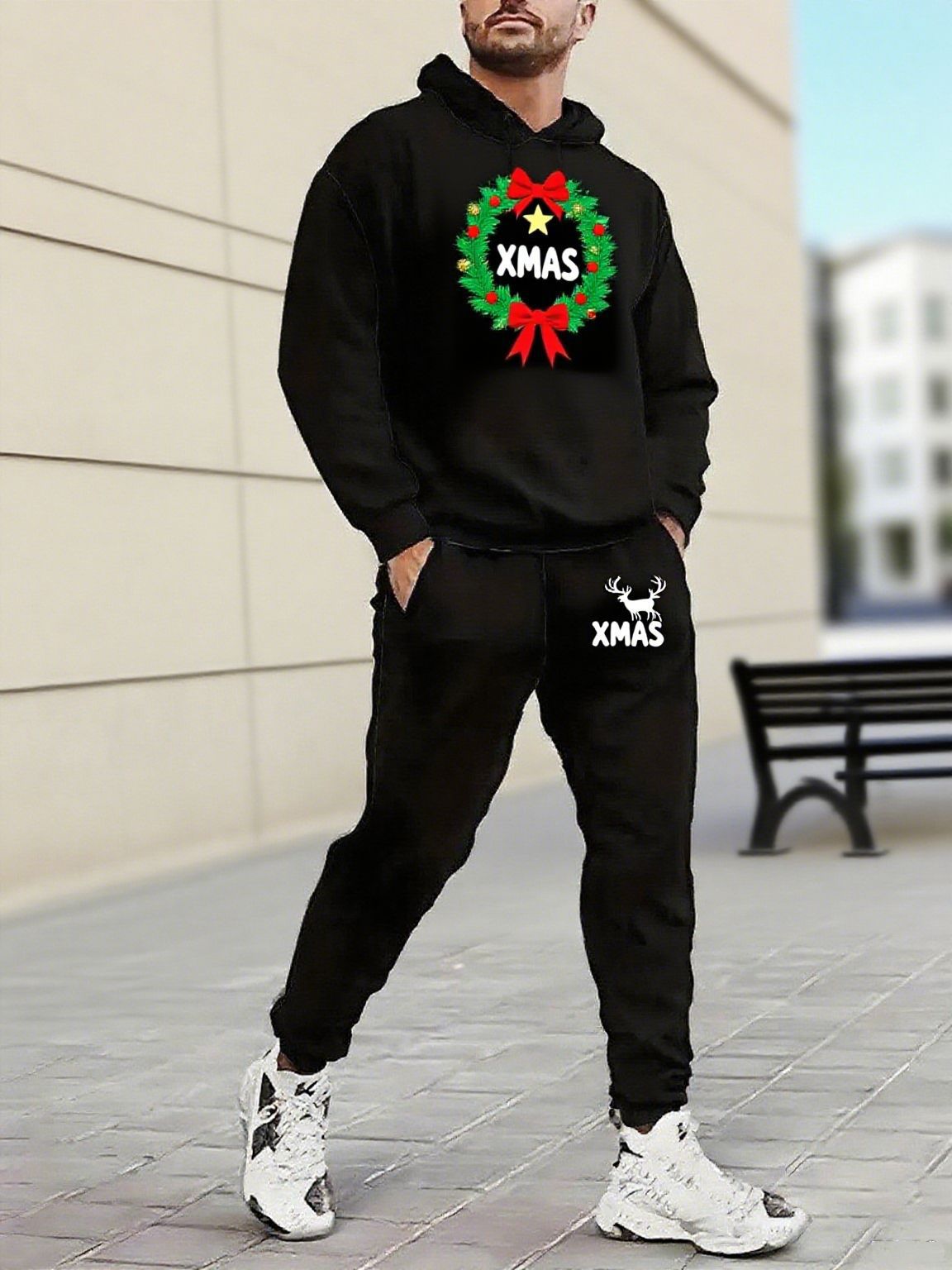 Men's Christmas Printed Long-Sleeved Trousers Two-Piece Sets