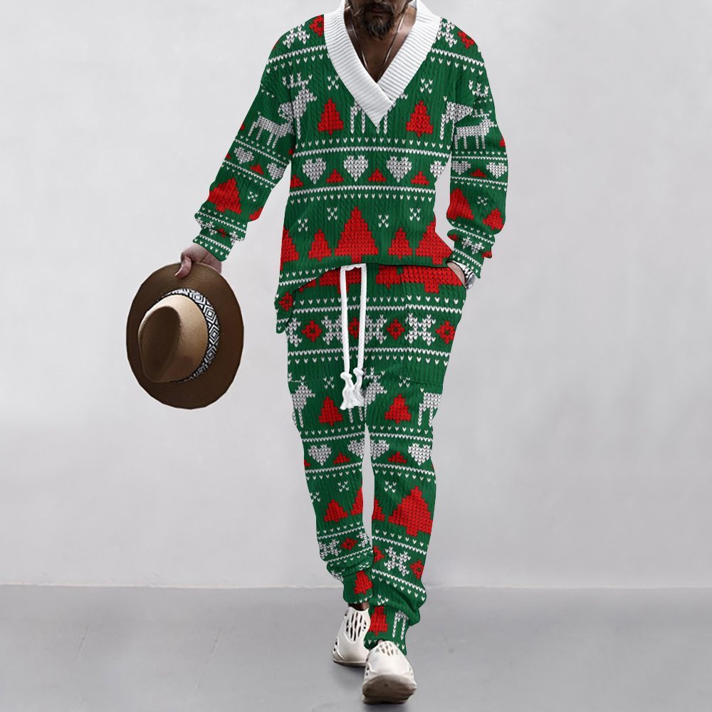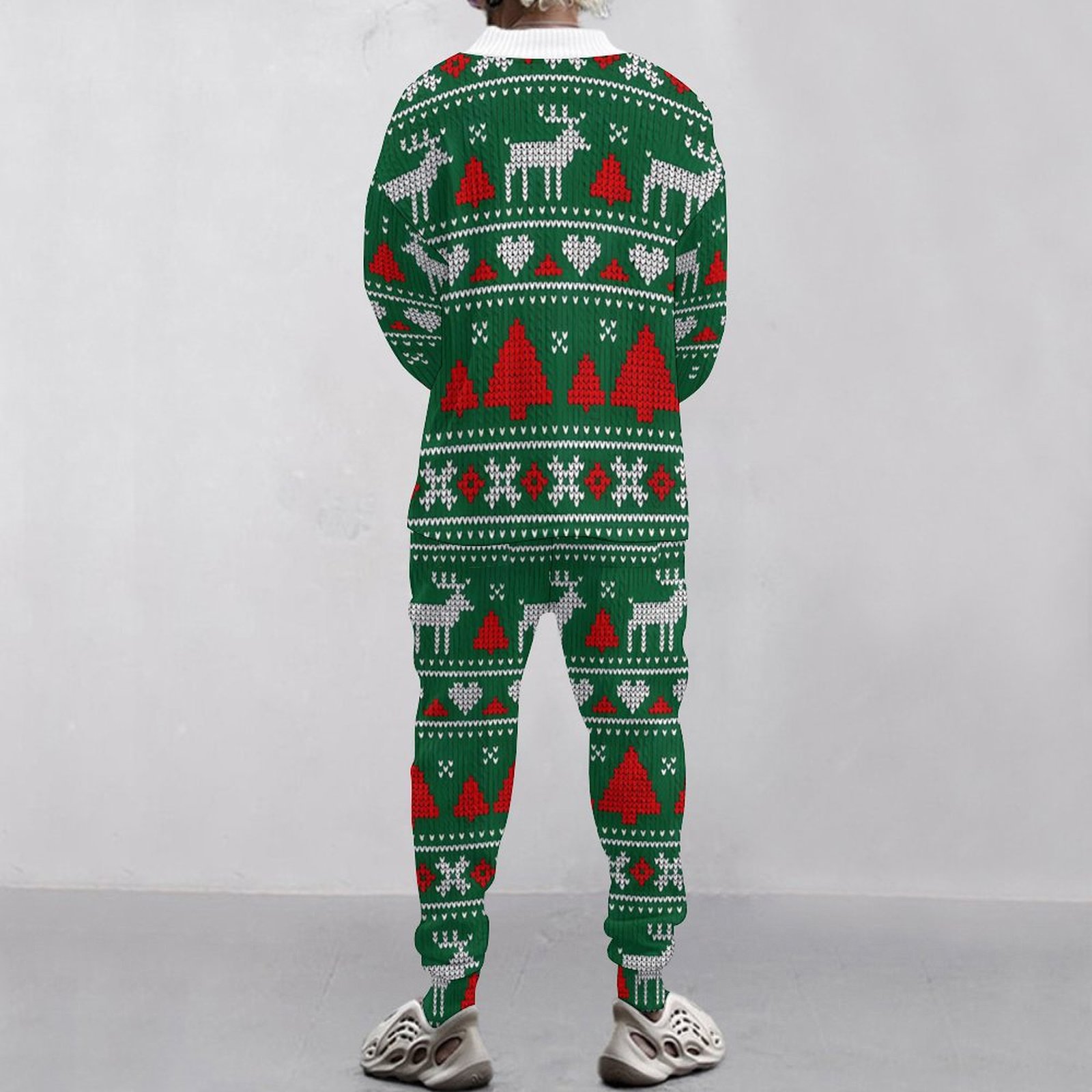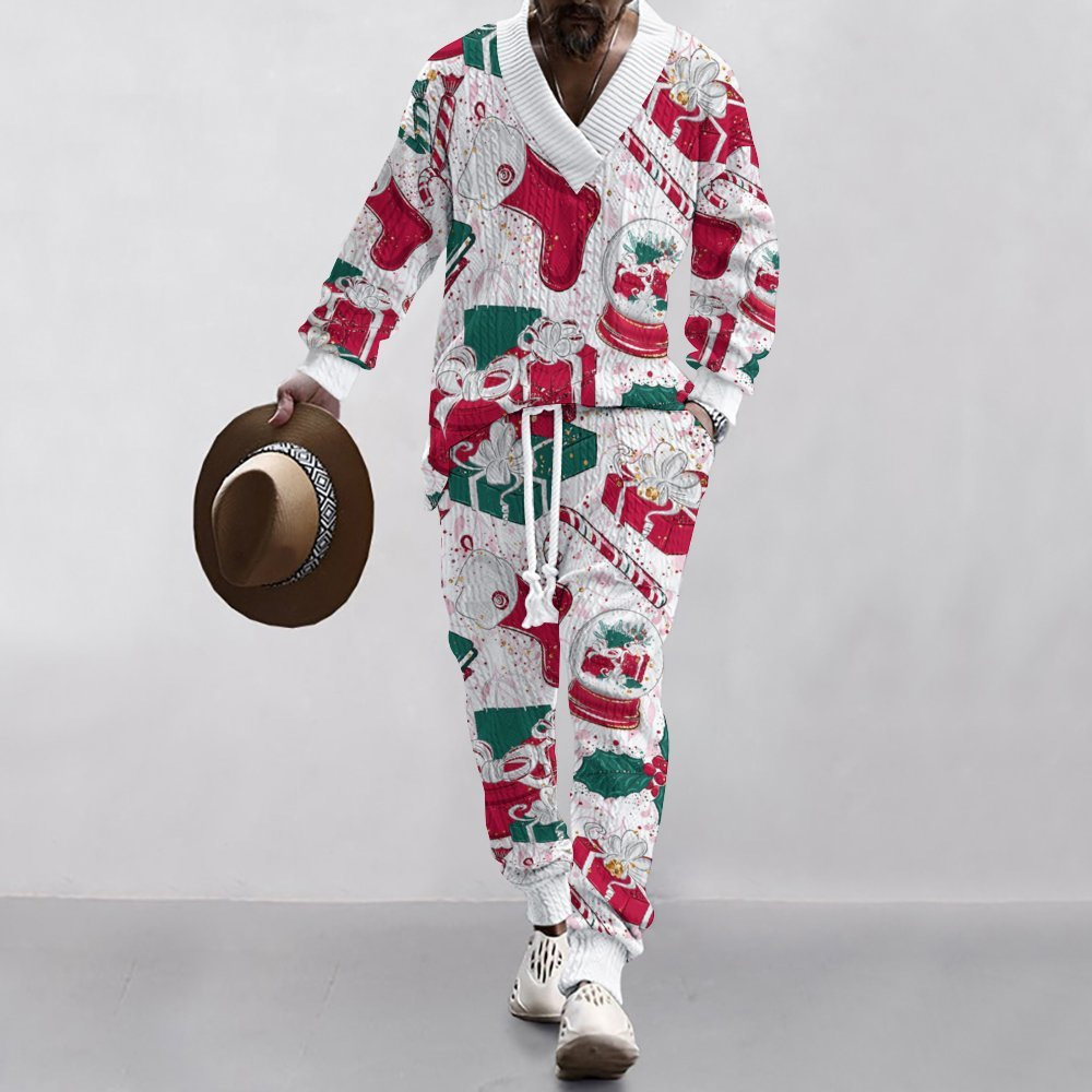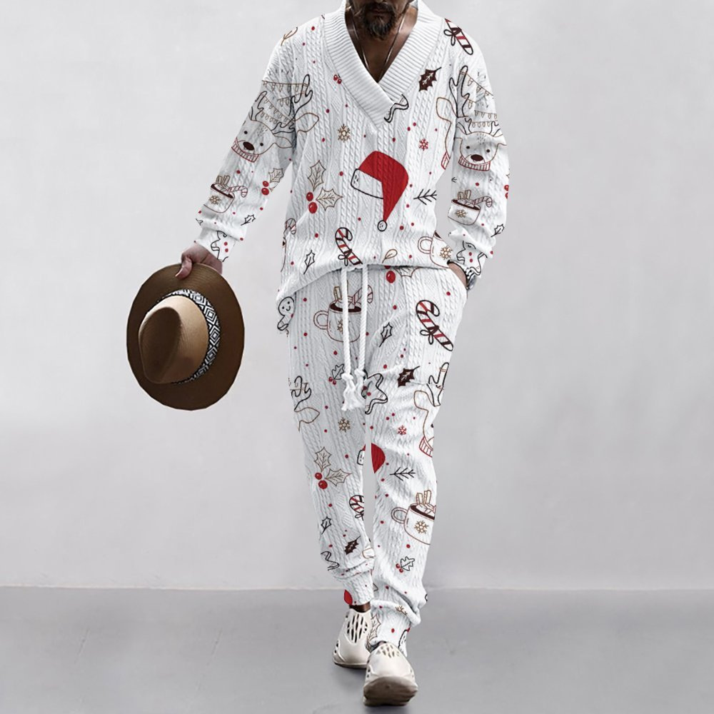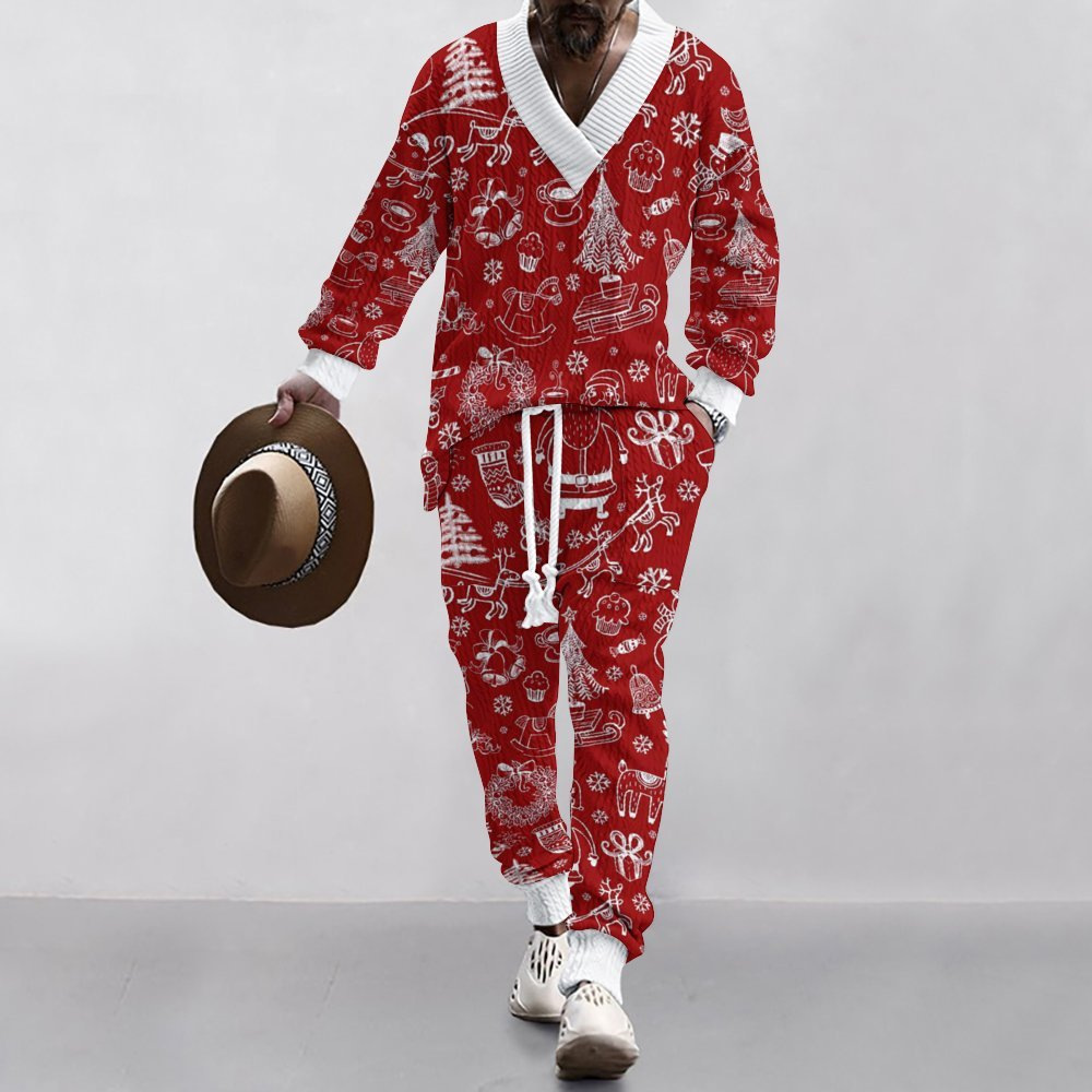 Men's Christmas Printed Long-Sleeved Trousers Two-Piece Sets