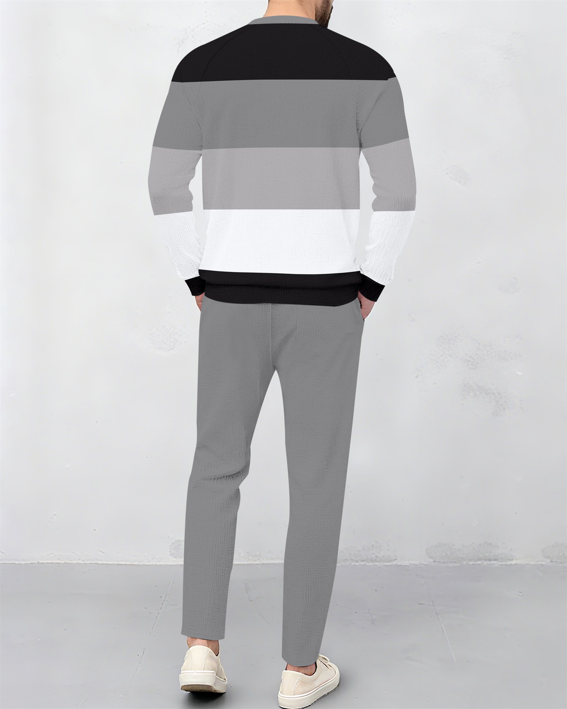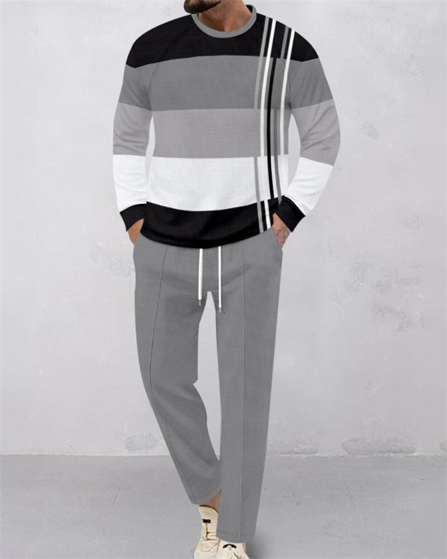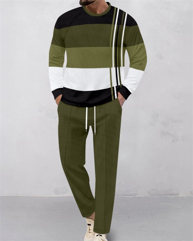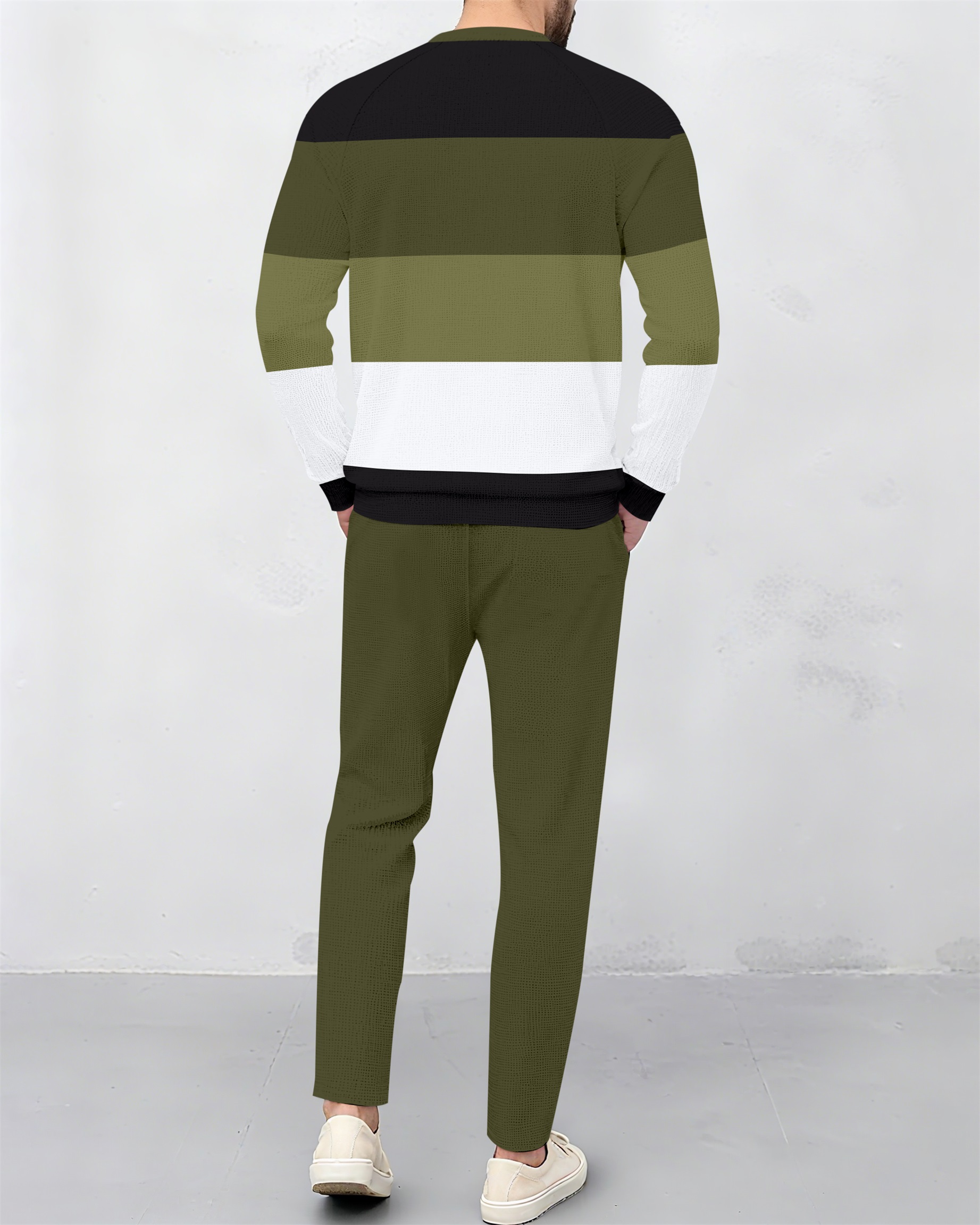 Men's Color-Blocked Waffle Round Neck Casual Sports Set 0502