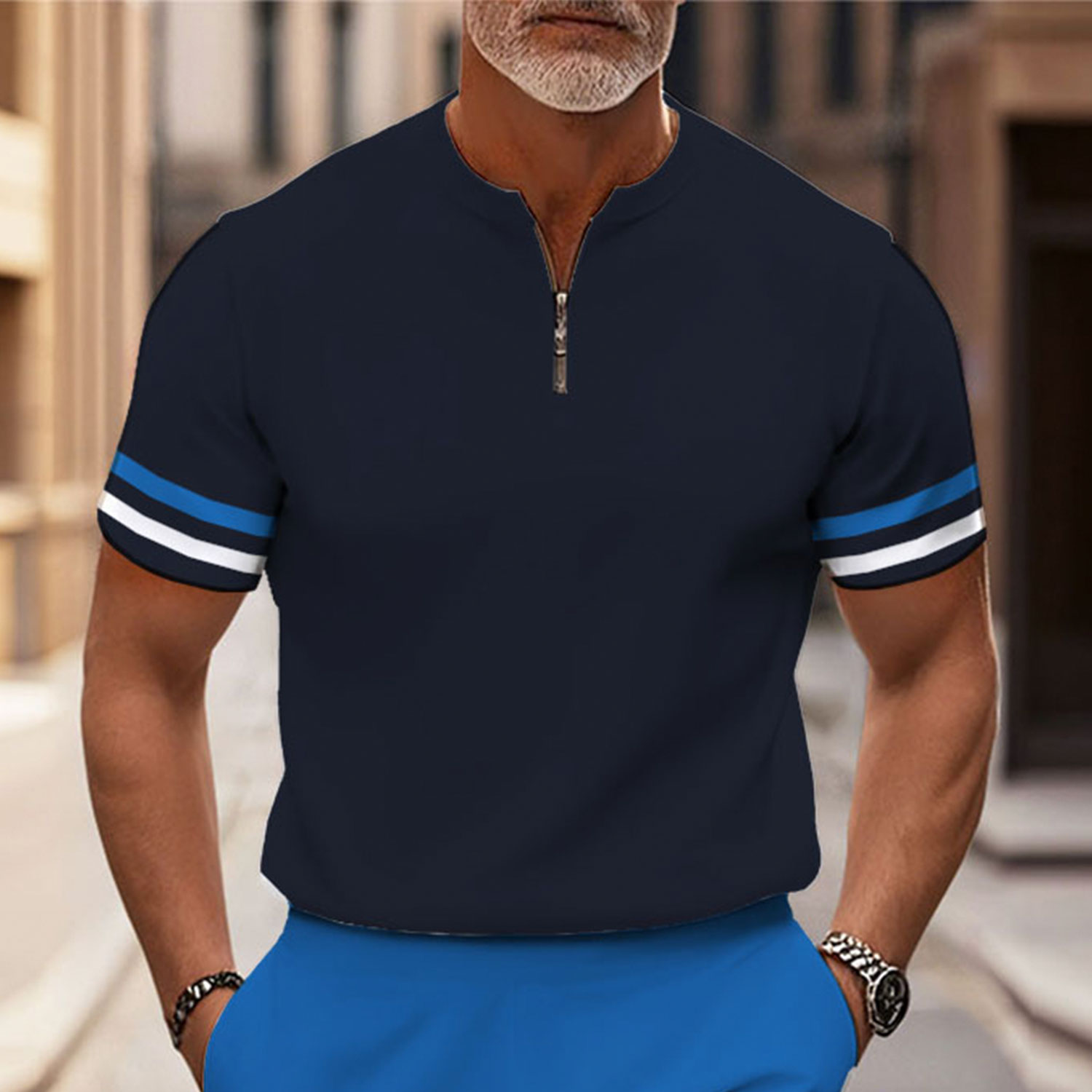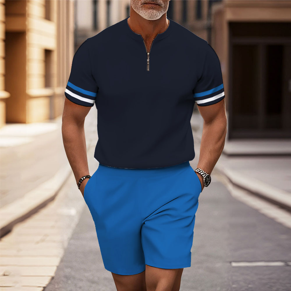 Men's Fashion Casual Round-Neck Geometric Printed Short-Sleeved Two-Piece Set