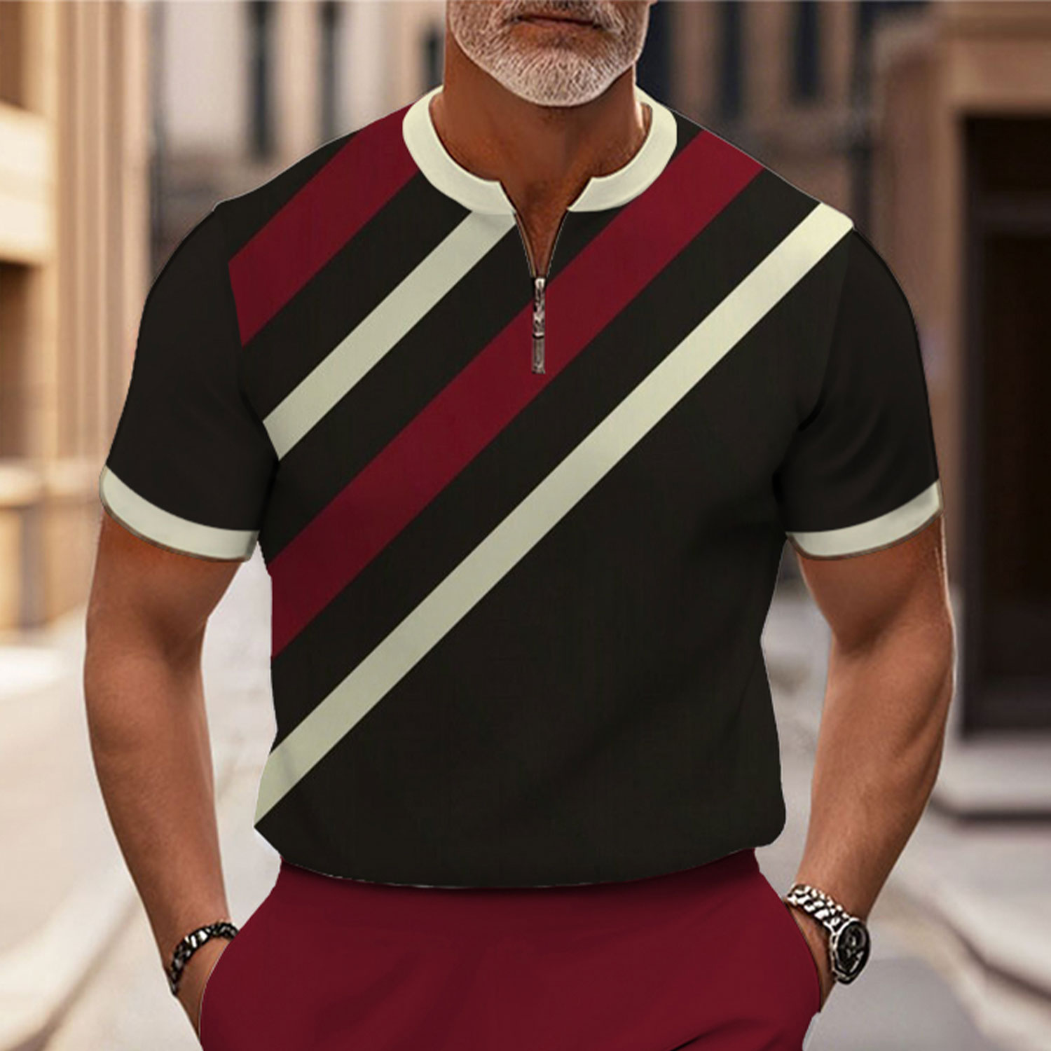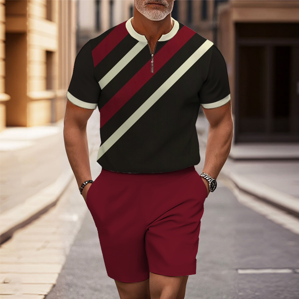 Men's Fashion Casual Round-Neck Geometric Printed Short-Sleeved Two-Piece Set