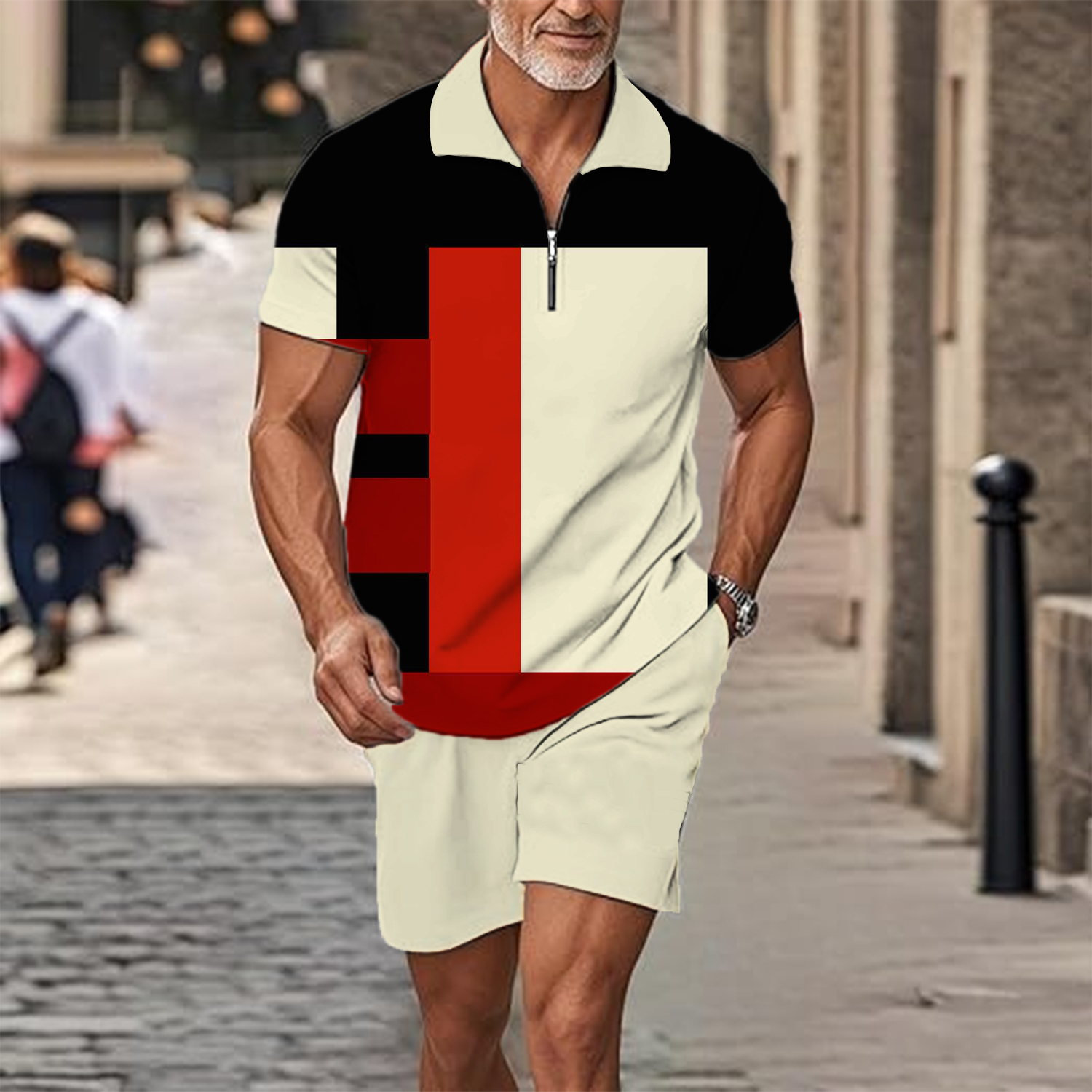 This men's casual two-piece set is the perfect combination of comfort and style, designed for the warmer seasons of spring and summer. Made from a high-quality blend of 100% cotton and polyester, the fabric ensures a soft feel while being breathable and durable for all-day wear. Featuring a bold geometric print, this set offers a unique, modern look that stands out in any casual or sporty setting. The round-neck design and short sleeves provide a relaxed and comfortable fit, ideal for various occasions like casual outings, sports, or weekend get-togethers.