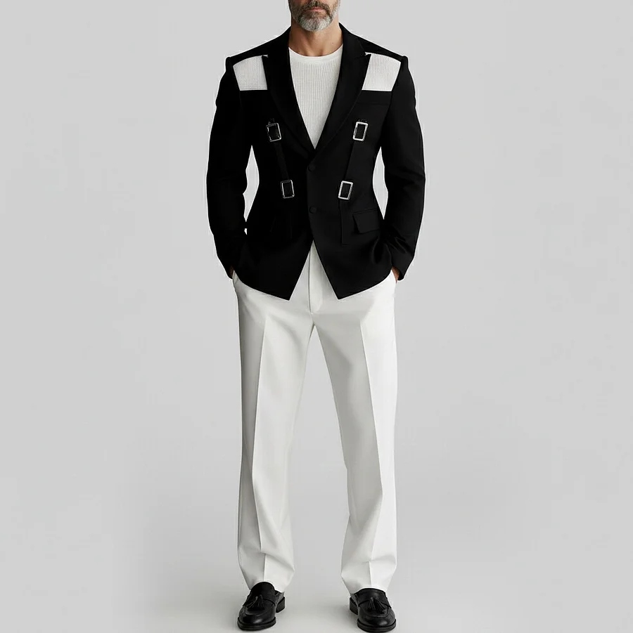 Details: Long Sleeve, Buckle Straps, Single Breasted