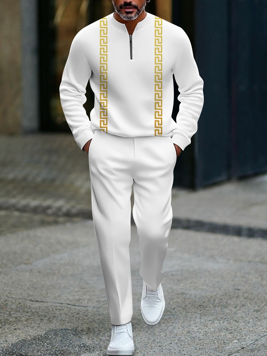 Product descriptionFabric Name: 100% Polyester cottonPattern: Geometric PrintProcess: PrintedStyle: CasualLength: RegularCollar: Zipper NeckPopular Elements: Contrast ColorSleeve Type: Long SleeveOccasion: Leisure, StreetSize Chart