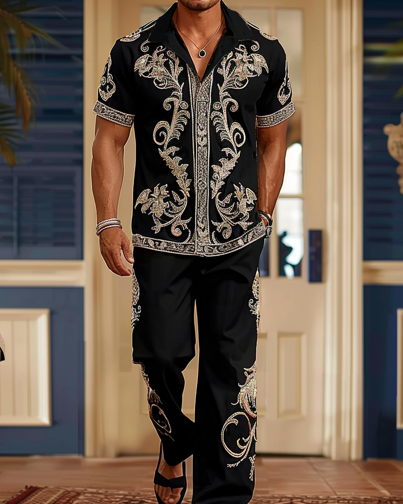 Men's Gorgeous Ethnic Floral Pattern Walking Suit 015