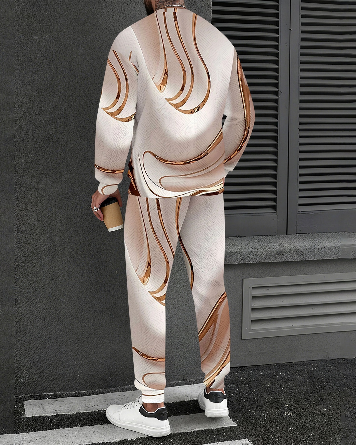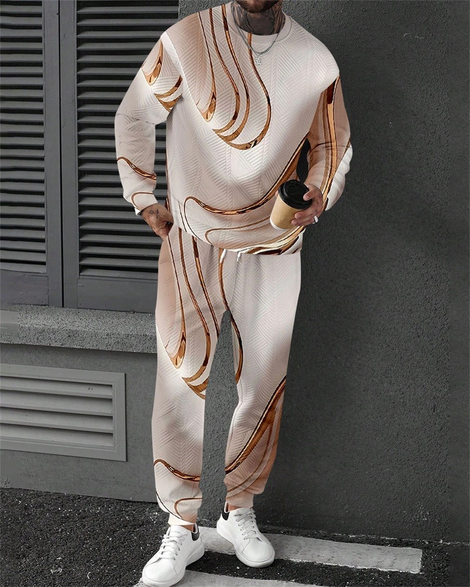 Men's Gradient Print Textured Long Sleeve Pants Set 605