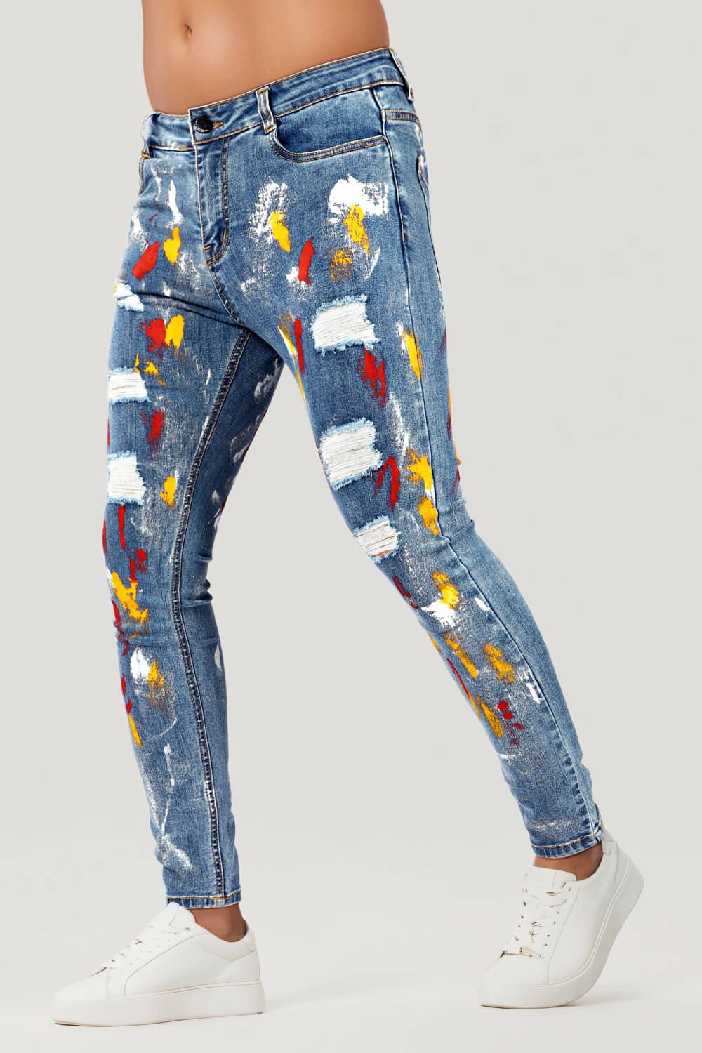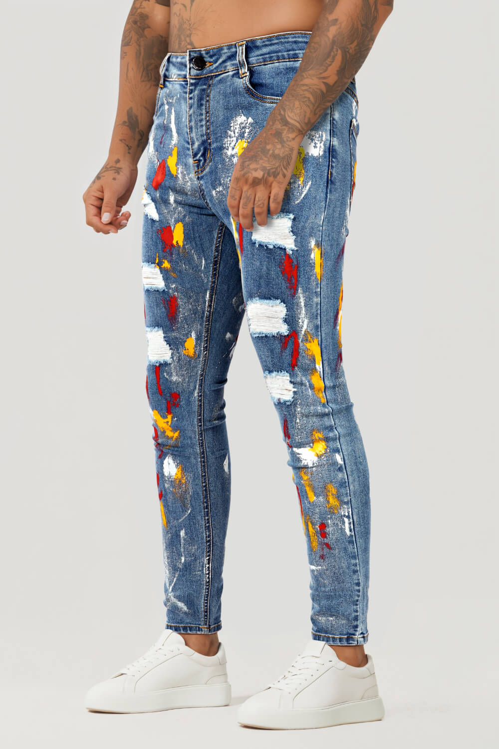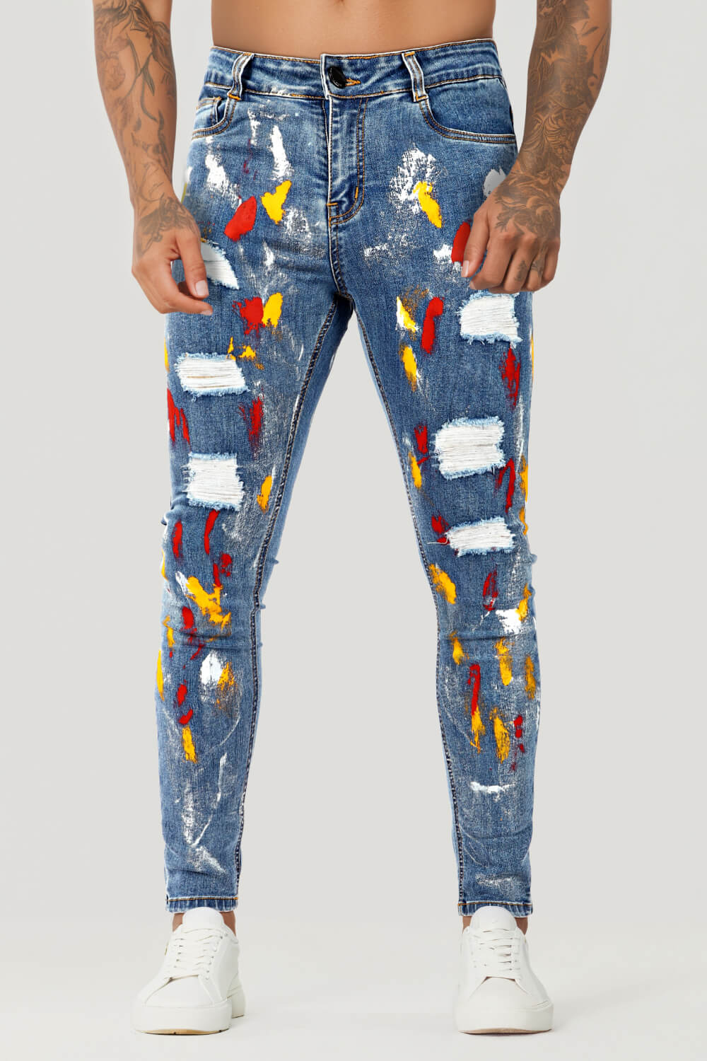 Super comfortable and high-stretch denim jeans designed with a form-flattering, muscular thighs fit. Our men's graffiti jeans fit your lower body to wear all day long and can be paired with our popular basic tops.