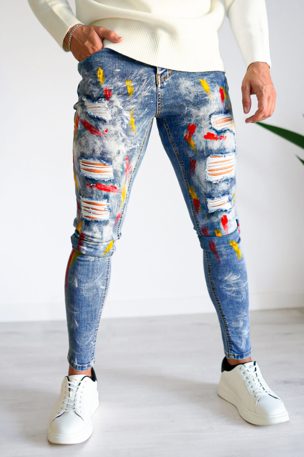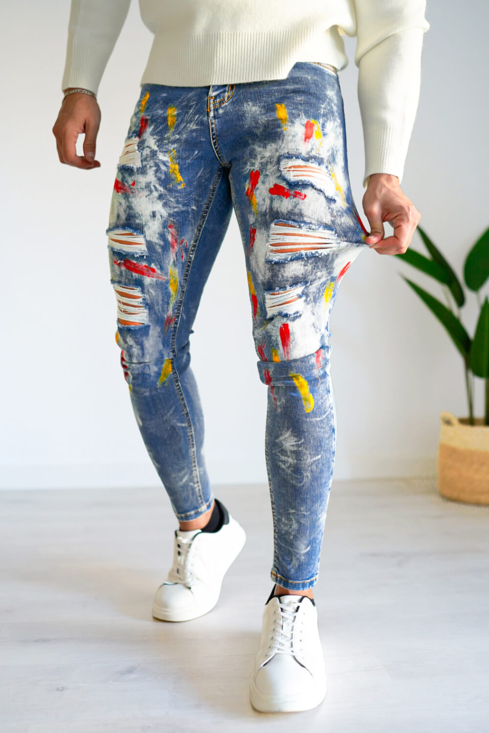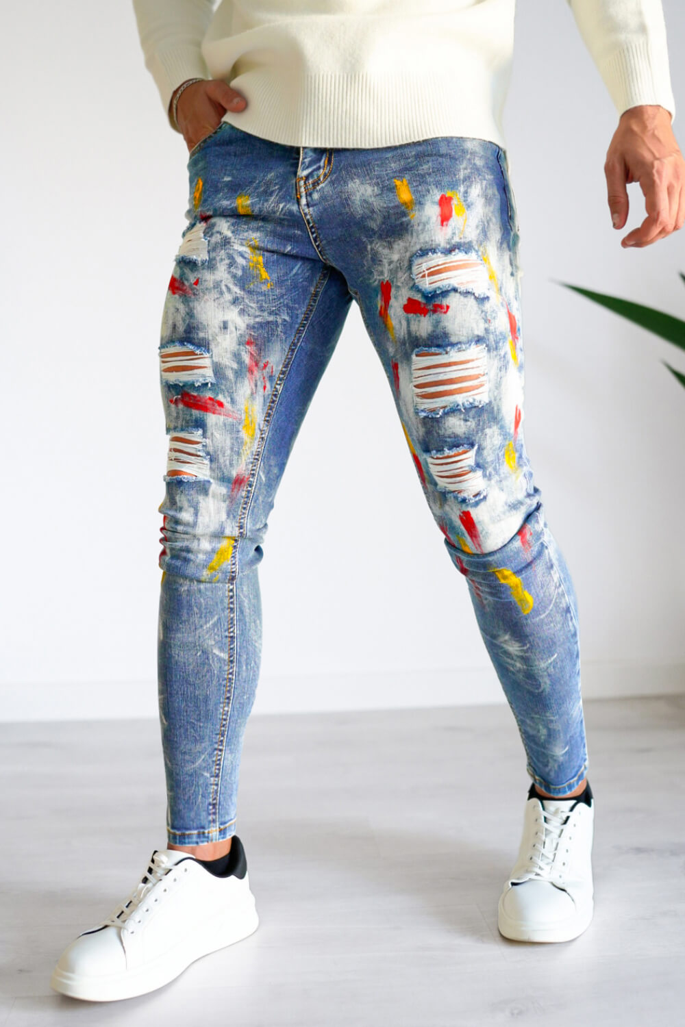 Super comfortable and high-stretch denim jeans designed with a form-flattering, muscular thighs fit. Our men's graffiti jeans fit your lower body to wear all day long and can be paired with our popular basic tops.