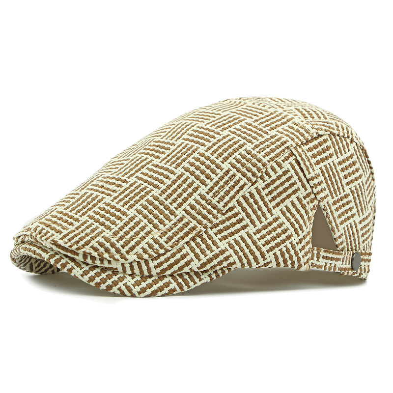 Men's Herringbone Pattern Sunshade Straw Woven Beret