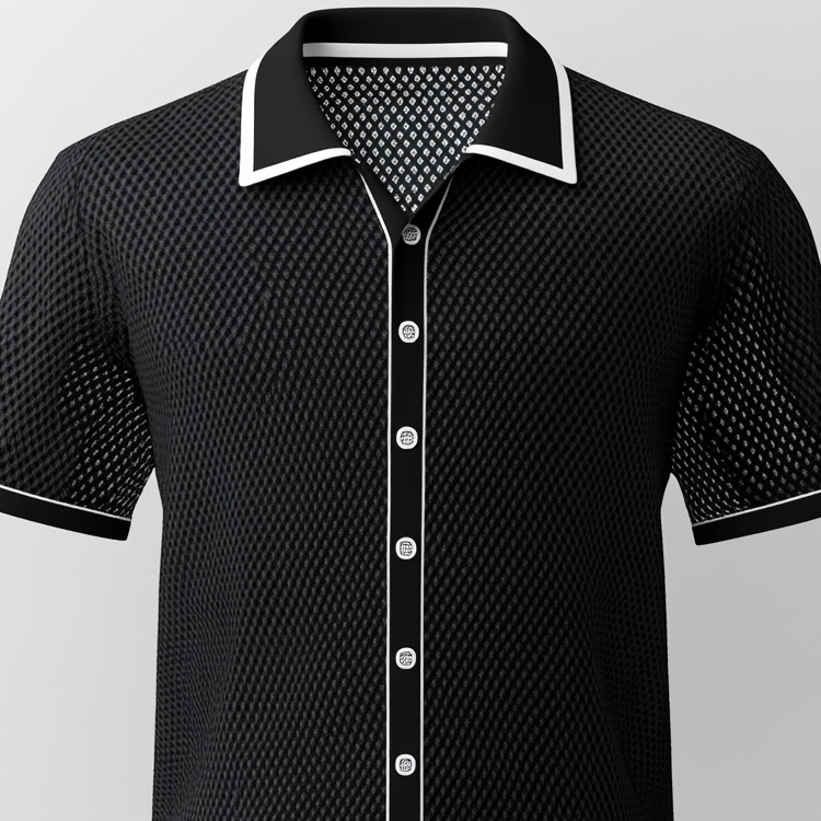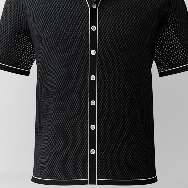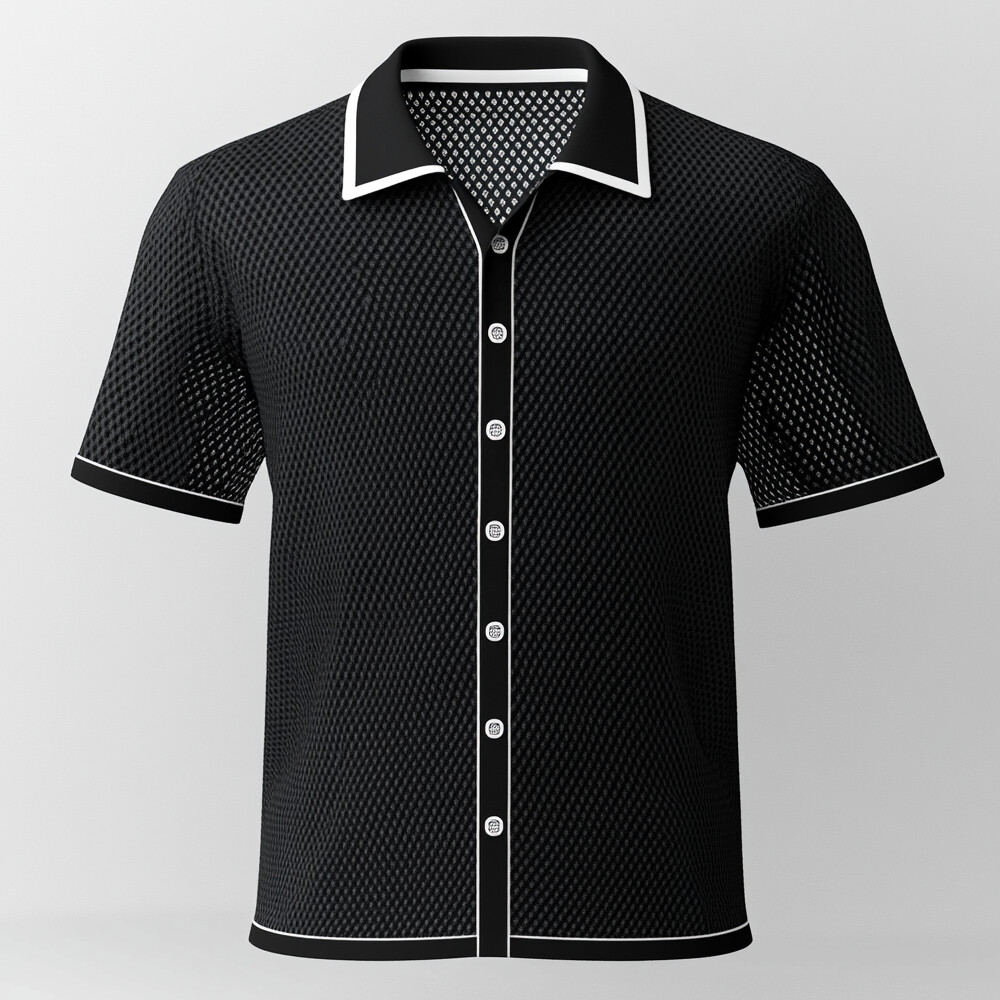 Men's Hollow Out Contrast Binding Turndown Collar Button Short Sleeve Shirt