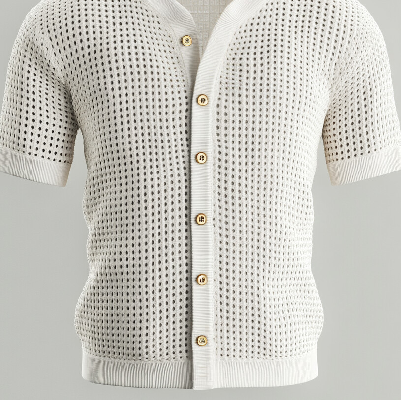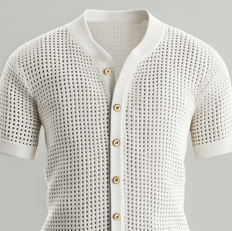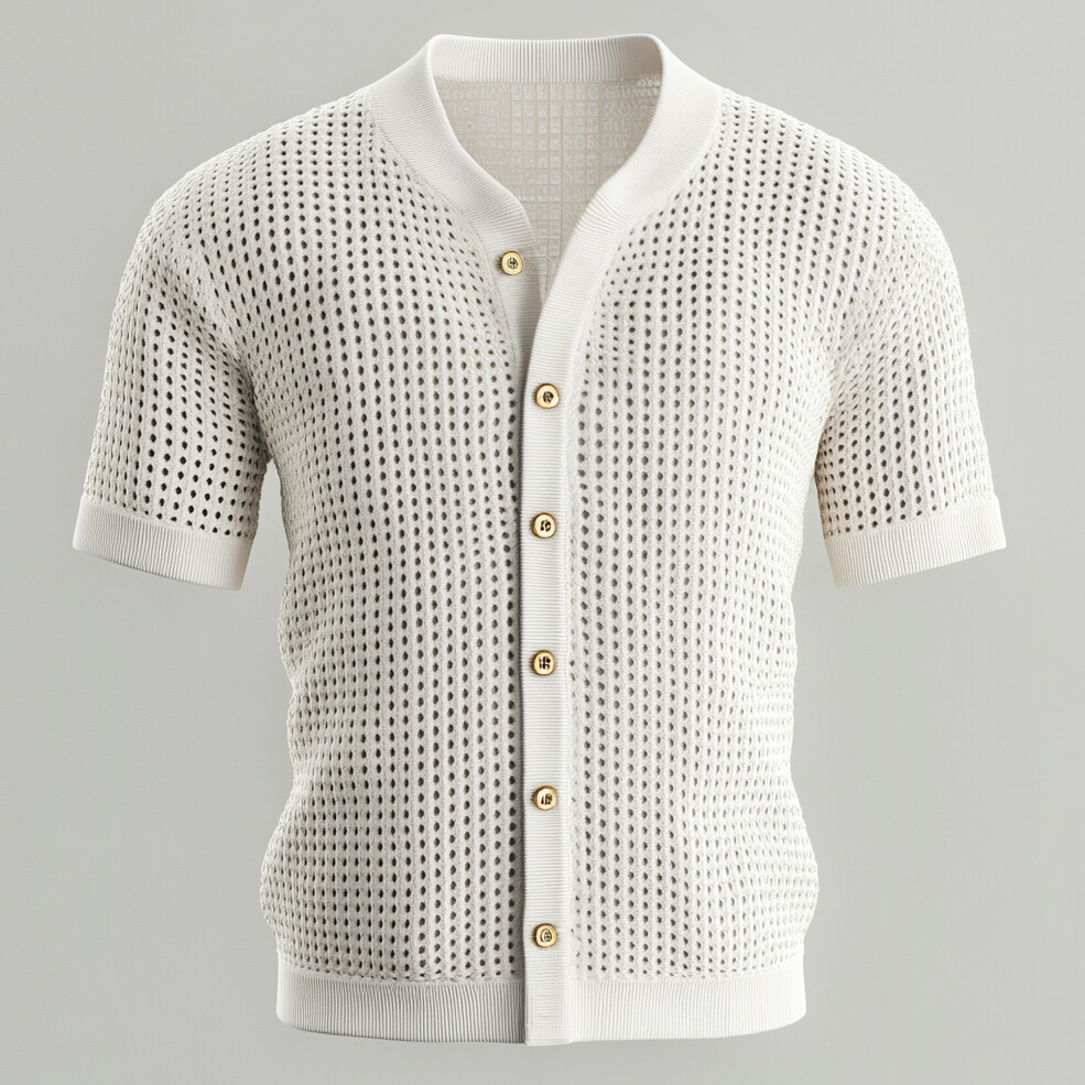 Men's Knit Hollow Out Single Breasted Short Sleeve Shirt