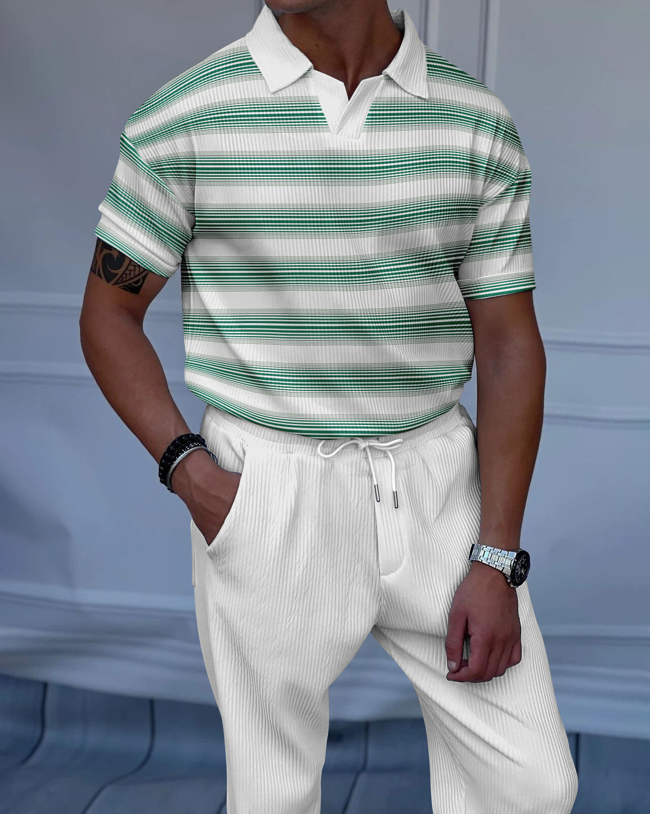 Men's Luxury Casual Textured Polo Short Sleeve Suit - 023