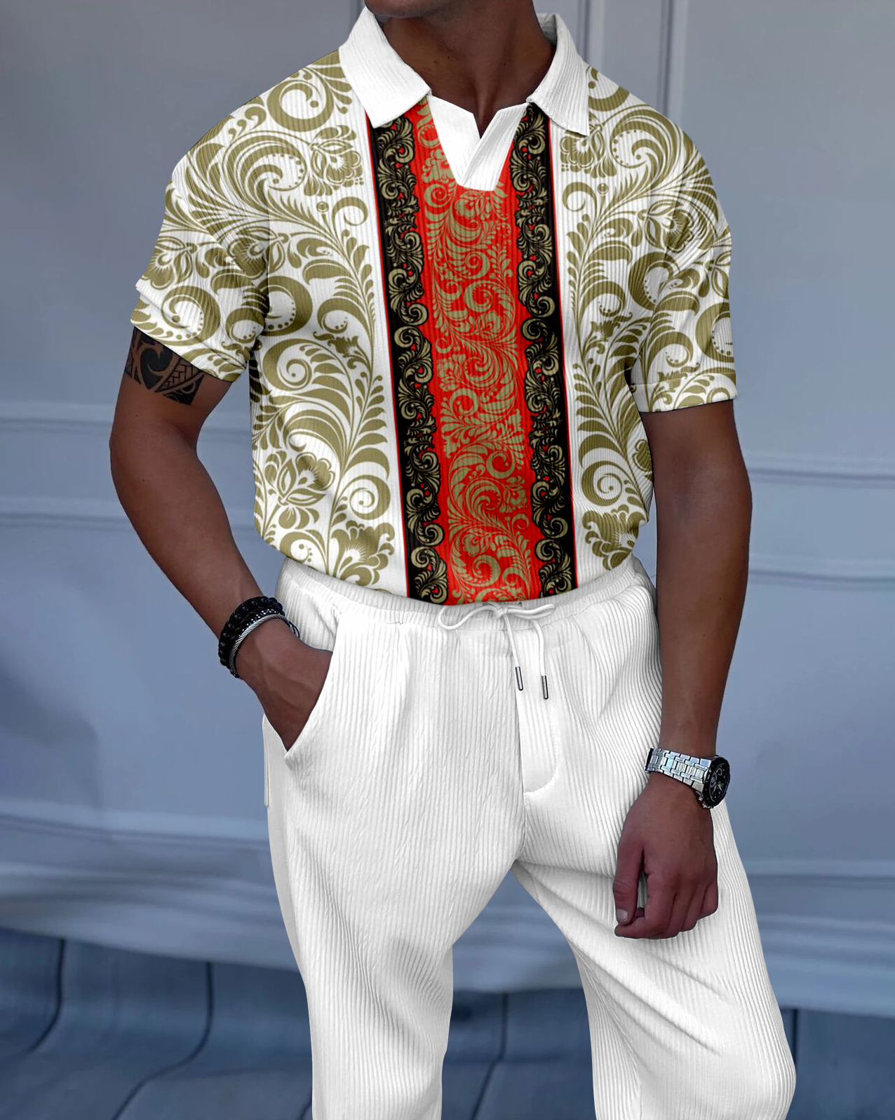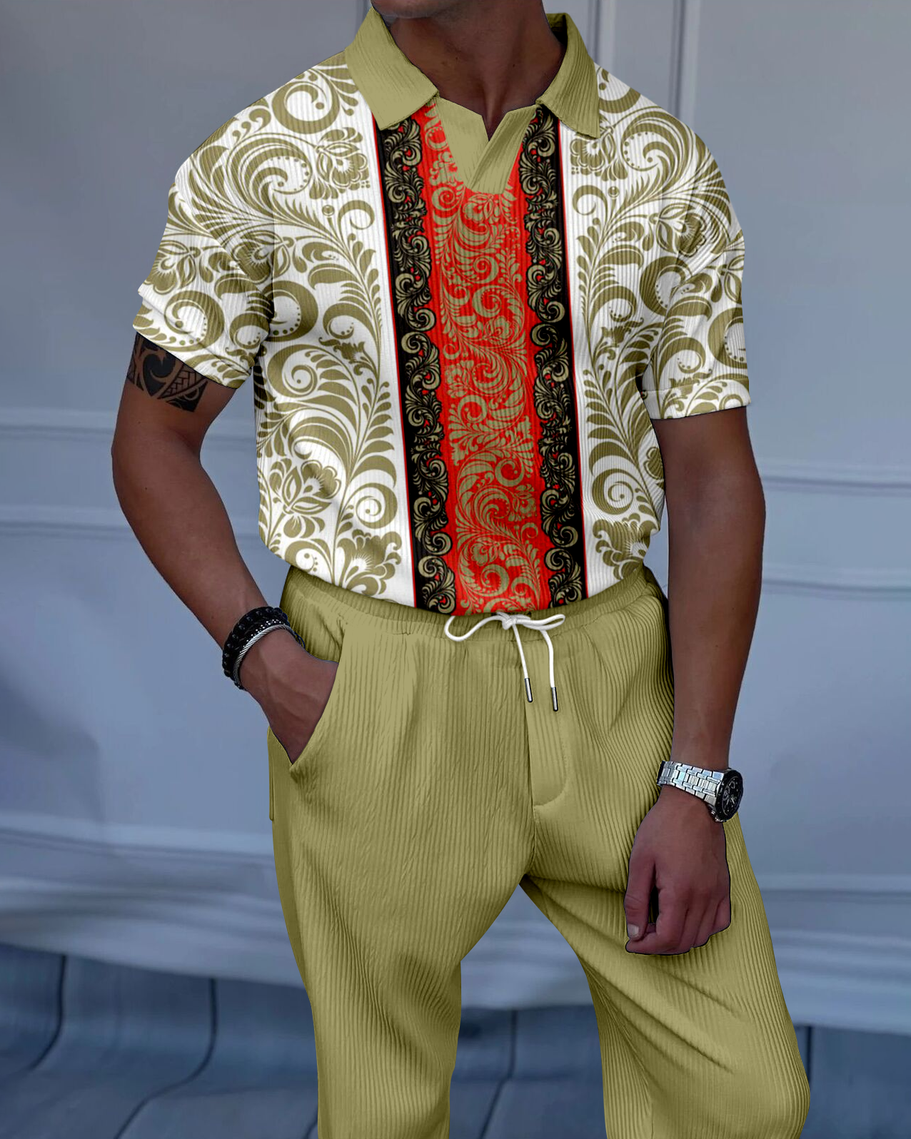 Men's Luxury Casual Textured Polo Short Sleeve Suit - 029
