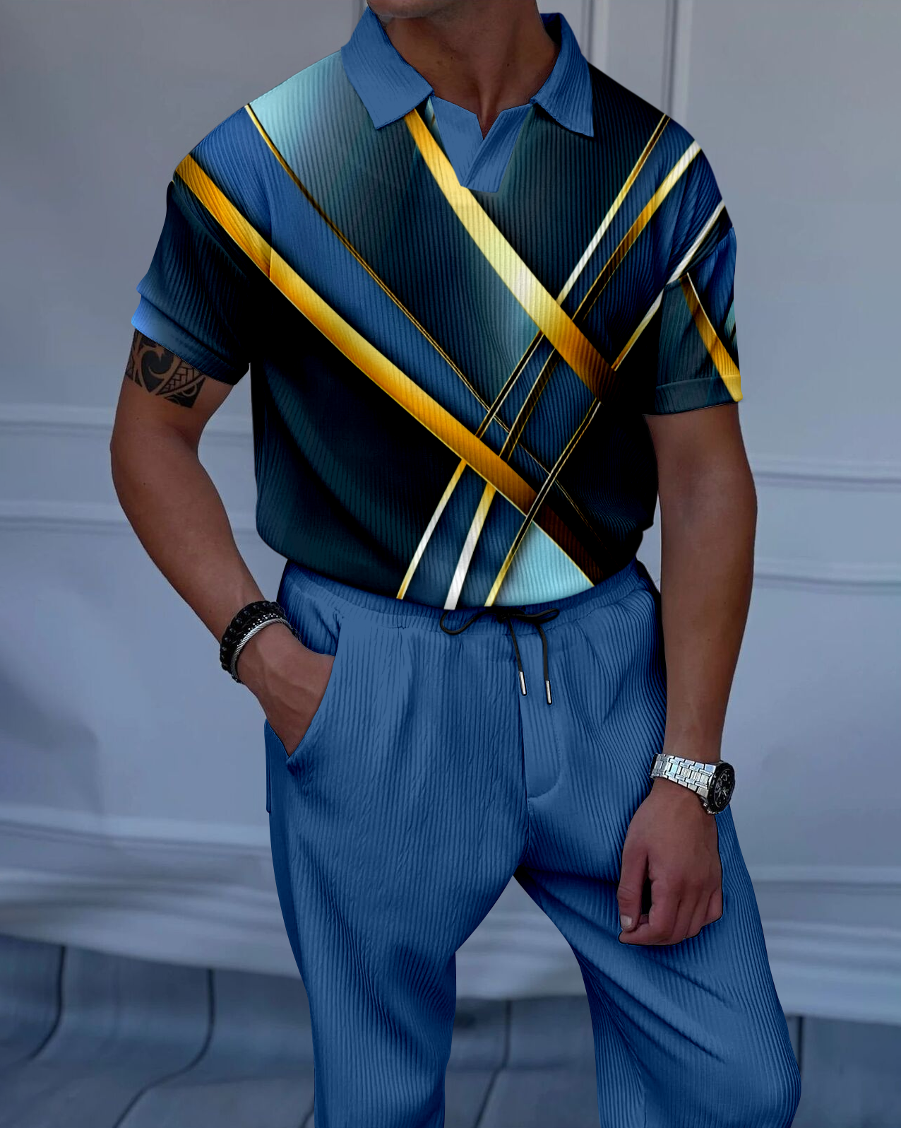 Men's Luxury Casual Textured Polo Short Sleeve Suit - 032
