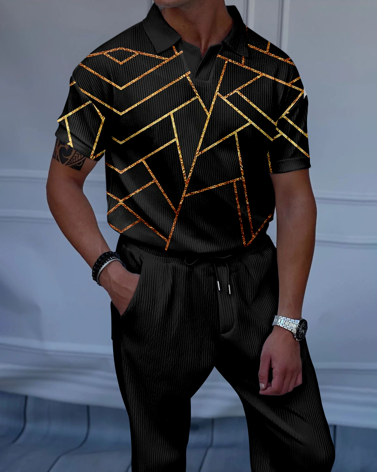 Men's Luxury Casual Textured Polo Short Sleeve Suit - 037