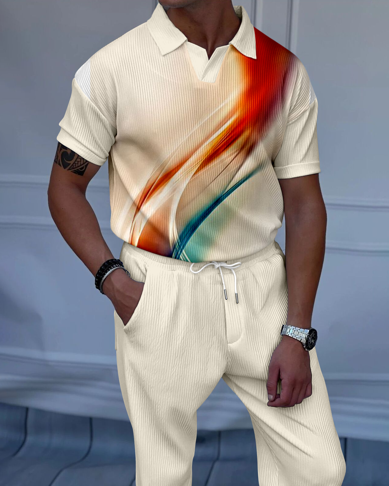 Men's Luxury Casual Textured Polo Short Sleeve Suit - 043