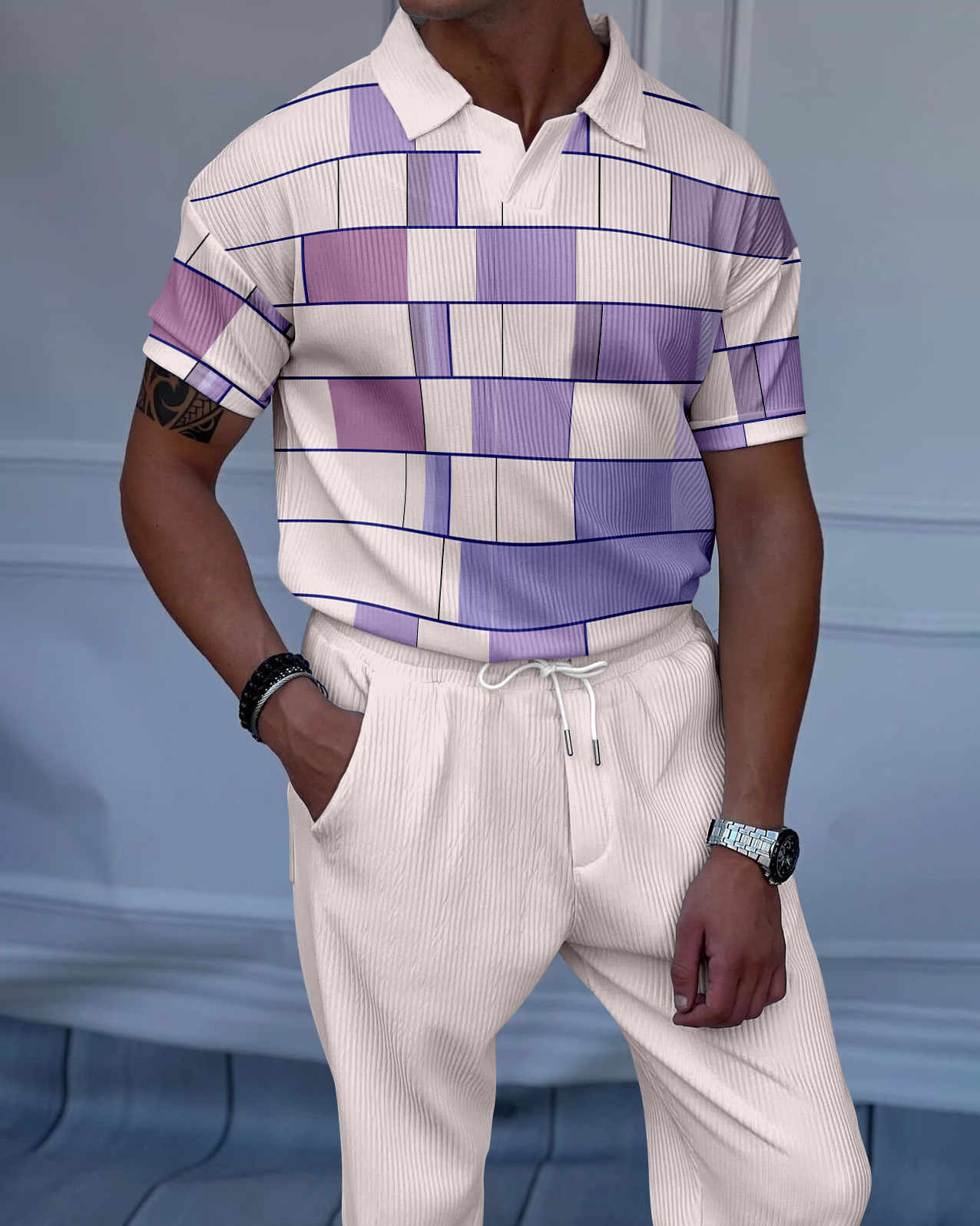 Men's Luxury Casual Textured Polo Short Sleeve Suit - 068