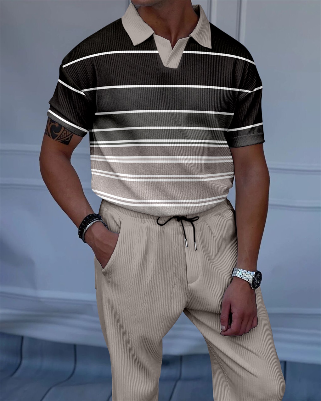 Men's Luxury Casual Textured Polo Short Sleeve Suit - 085