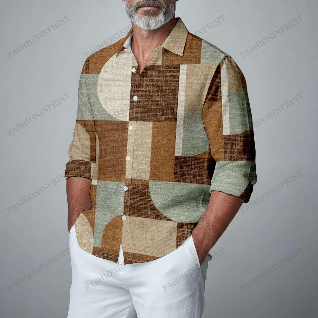 Men's Multi Color Matching Geometric Ethnic Style Pattern Long-Sleeved Shirts Tops
