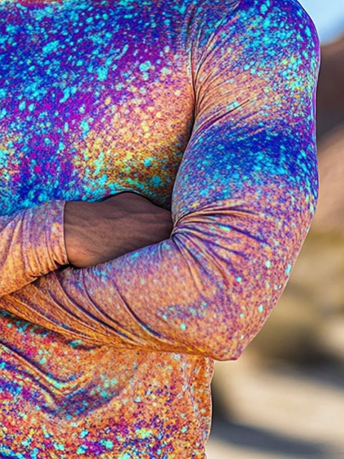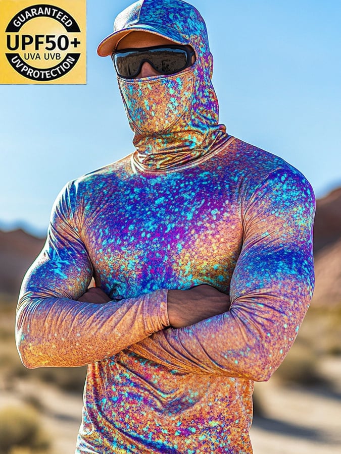 Men's Outdoor Sun Protection Breathable Cool Colorful Mask Hooded Sun Protection Long-Sleeved Top