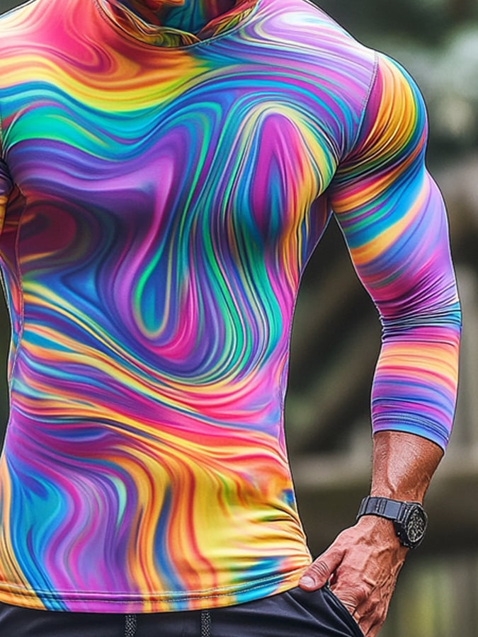 Men's Outdoor Sun Protection Breathable Cool Colorful Mask Hooded Sun Protection Long-Sleeved Top