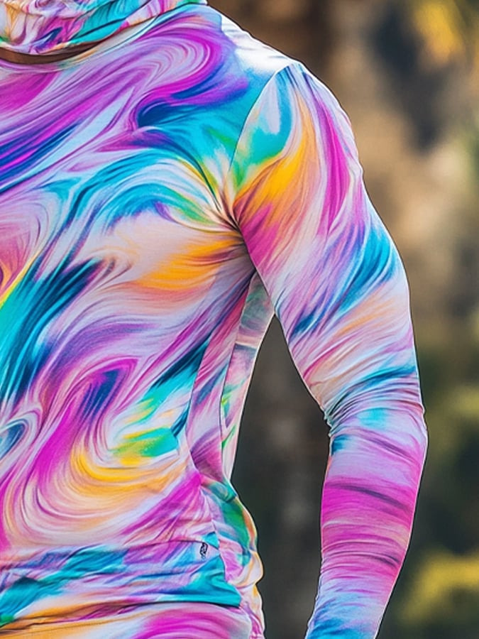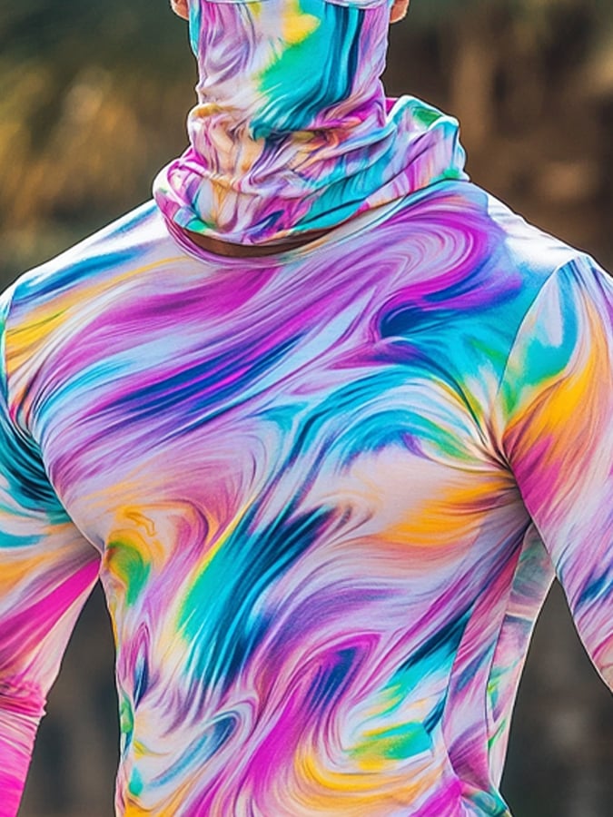 Men's Outdoor Sun Protection Breathable Cool Colorful Mask Hooded Sun Protection Long-Sleeved Top